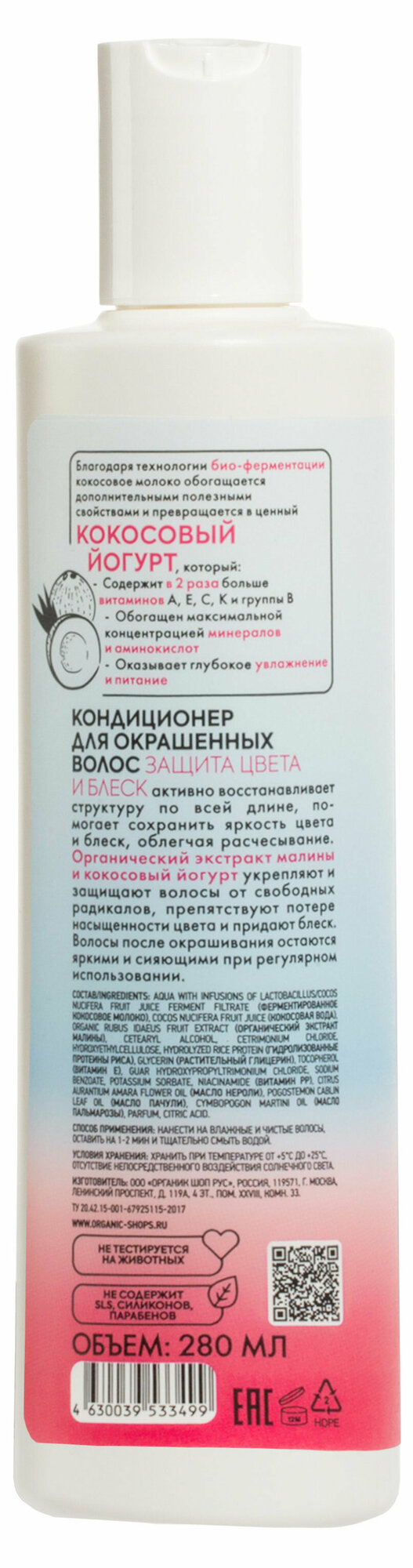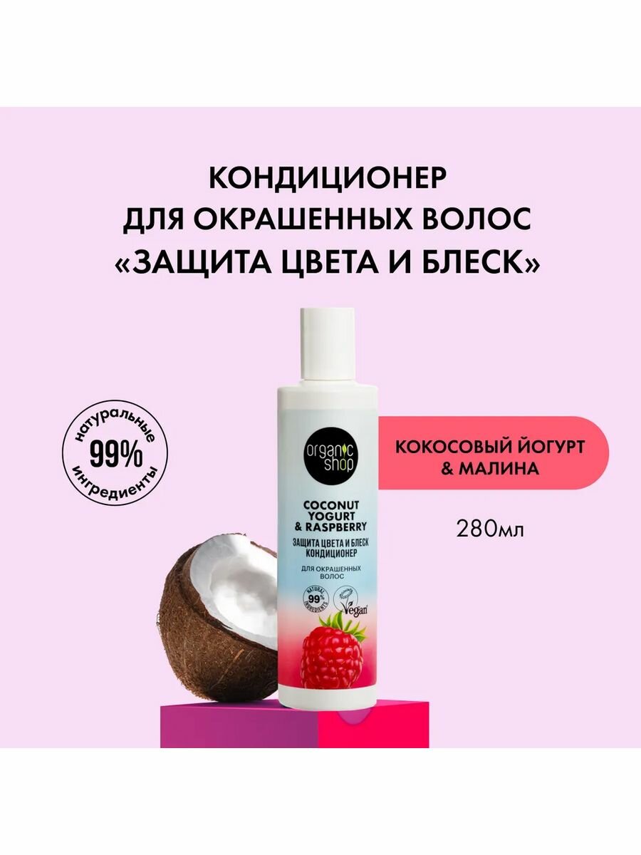 На сегодняшний день товар «Кондиционер для окрашенных волос Organic Shop Coconut yogurt Защита цвета и блеск 280 мл» можно купить с кешбеком в 1 магазине: Яндекс.Маркет