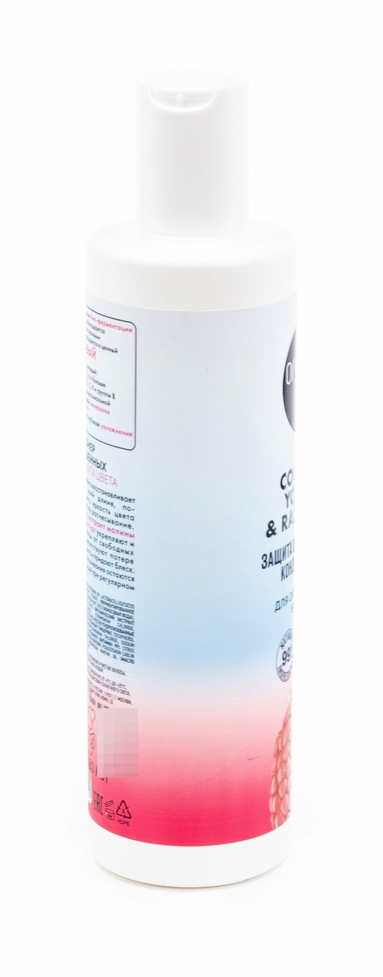 | Состав | aqua, infusions of lactobacillus/cocos nucifera fruit juice ferment filtrate, cocos nucifera fruit juice, organic rubus idaeus fruit extract, cetearyl alcohol, cetrimonium chloride, hydroxyethylcellulose, hydrolyzed rice protein, glycerin, tocopherol, guar hydroxypropyltrimonium chloride, sodium benzoate, potassium sorbate, niacinamide, citrus aurantium amara flower oil, pogostemon cablin leaf oil, cymbopogon martini oil, parfum, citric acid |