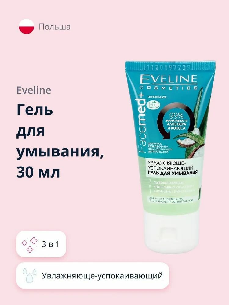 Гель для умывания Facemed+ увлажняющий успокаивающий 3в1 30 мл Еveline
