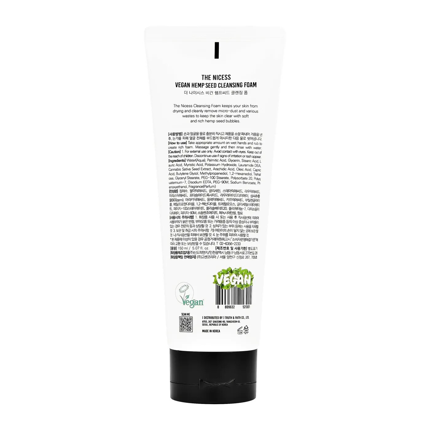 Пенка для лица The nicess Vegan Очищающая с экстрактом масла семян конопли 150 мл