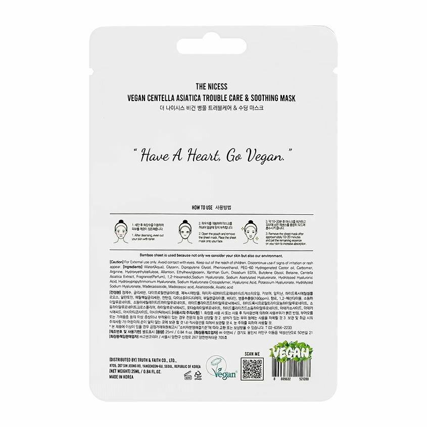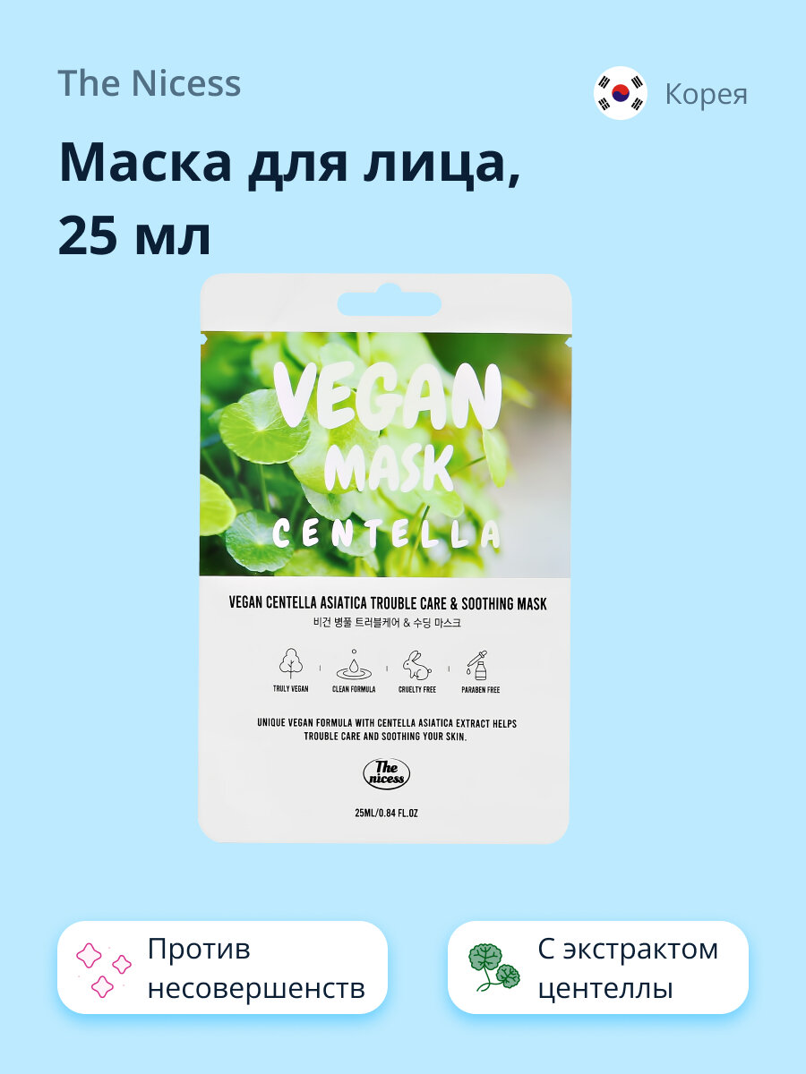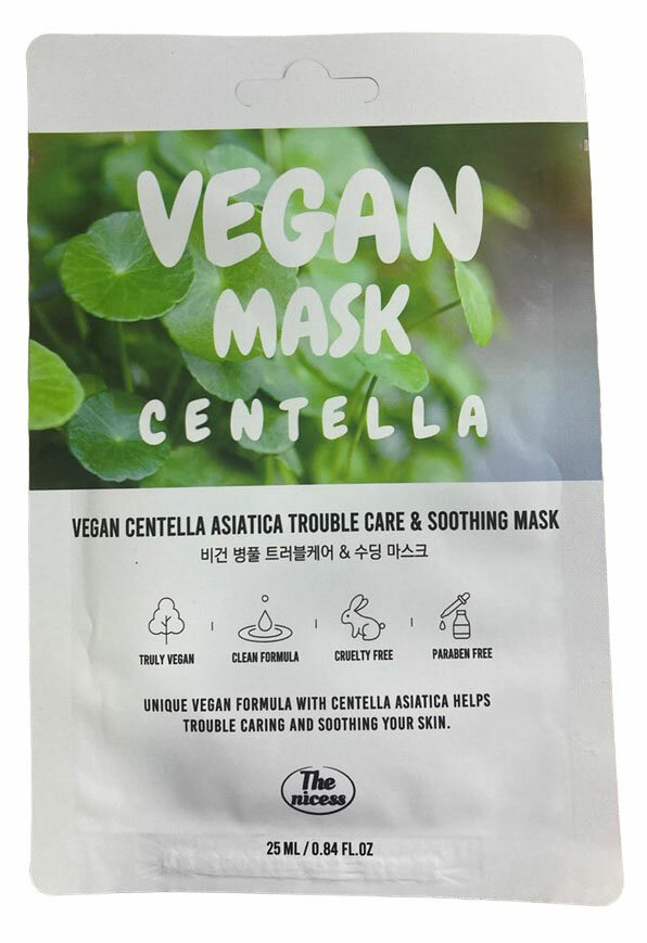 Маска для лица The nicess Vegan Centalla успокаивающая с центеллой 25 мл