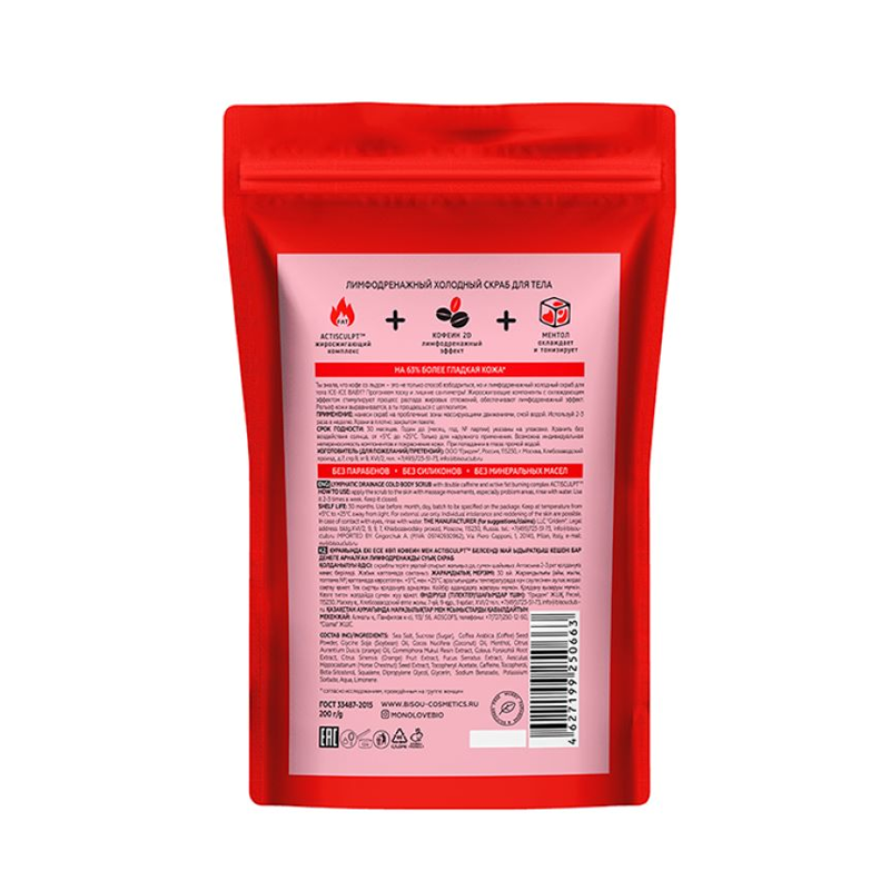 Скраб для тела MonoLove BIO Ice-Ice Baby Лимфодренажный охлаждающий кофейный 200 г