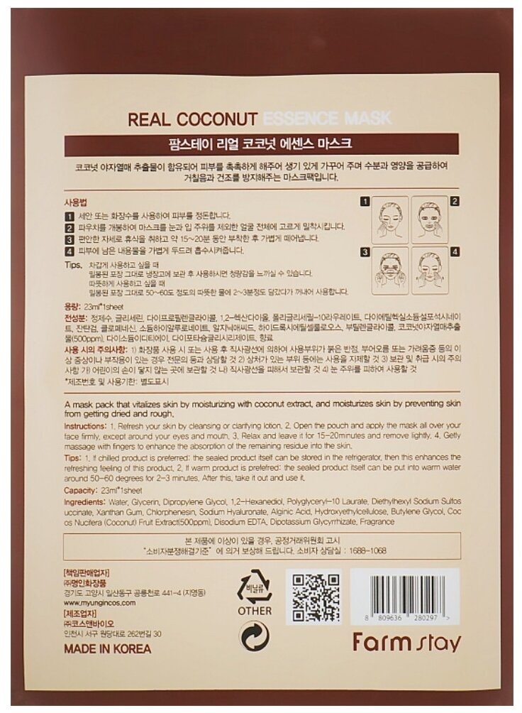 Маска для лица FarmStay с экстрактом кокоса тканевая 23 мл FSY-80032