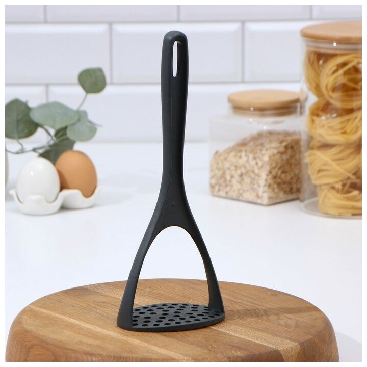 Отверстие в верхней части ручки позволяет хранить картофелемялку в подвешенном состоянии, что существенно экономит место на кухне.