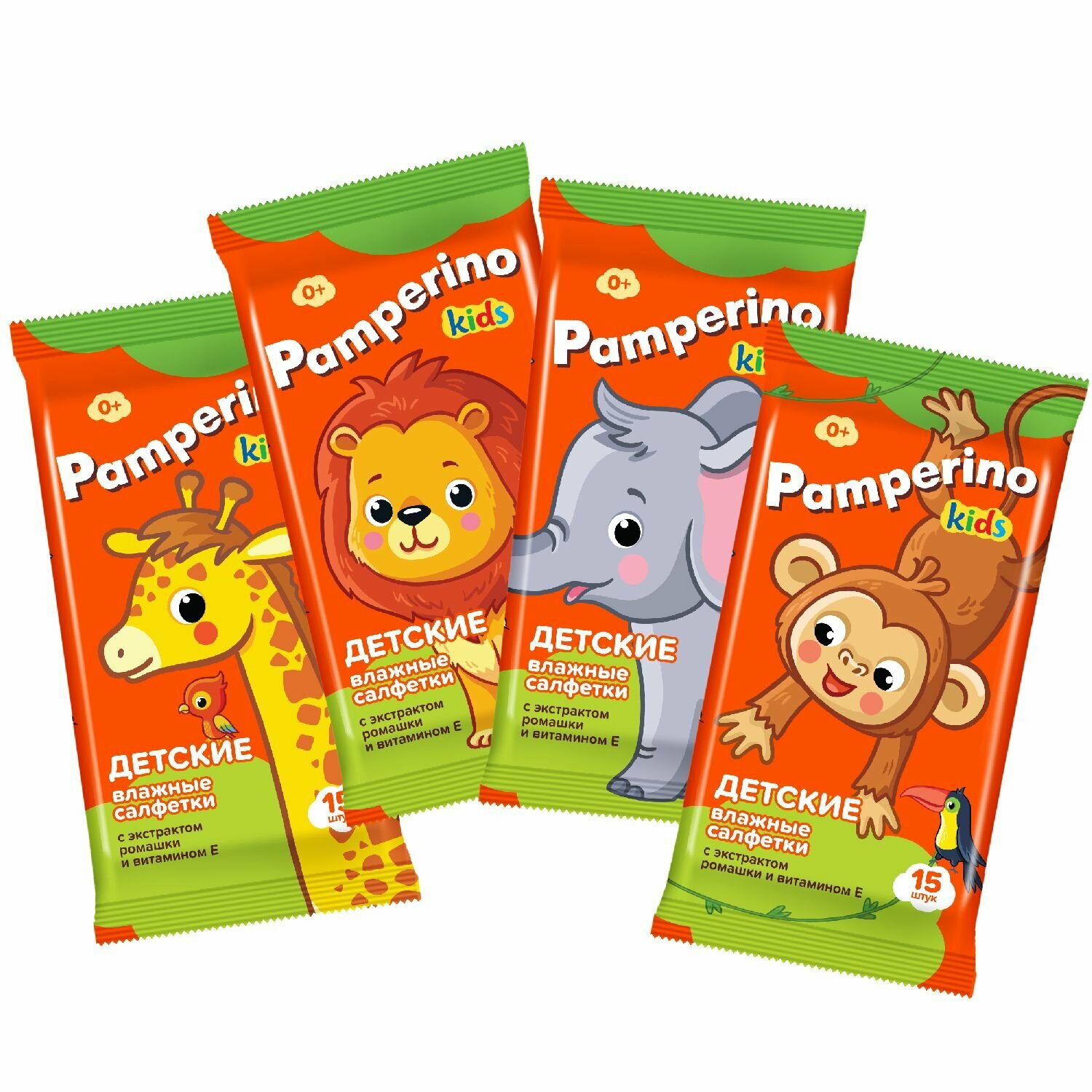 Салфетки влажные детские Pamperino с экстрактом ромашки и витамино Е 15 шт
