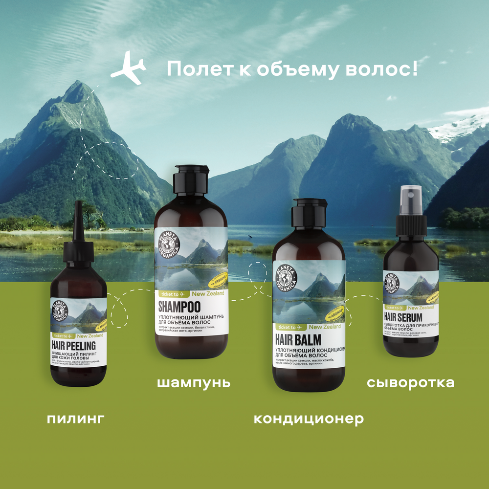Шампунь для объема волос Planeta Organica Ticket to New Zealand Уплотняющий 400 мл