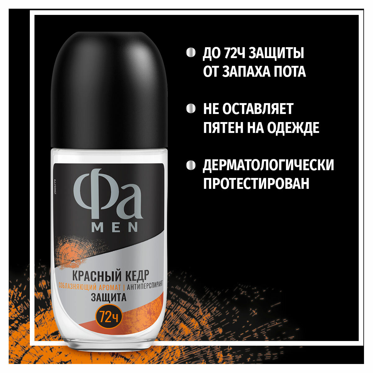 Антиперспирант роликовый мужской FA Red Cedarwood чувственный аромат кедра и винтажного виски 72 часа 50 мл