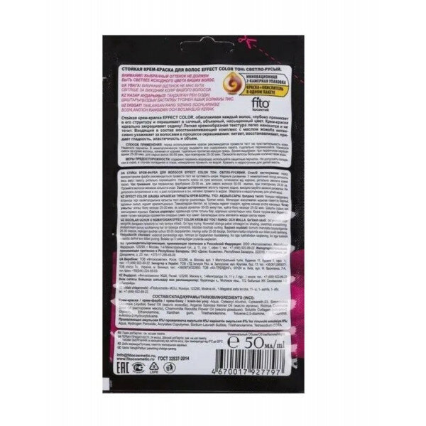 Инновационная 2-камерная упаковка содержит краску и проявляющую эмульсию в одном пакете. Стойкая крем-краска effect color, обволакивая каждый волос, глубоко проникает в его структуру и окрашивает в сочный, объемный, насыщенный цвет. Крем-краска идеально закрашивает седину! Легкая кремообразная текстура легко наносится и не течет. Входящий в состав восстанавливающий комплекс с маслом жожоба интенсивно ухаживает за волосами в процессе окрашивания: питает, восстанавливает, придает гладкость, эластичность и объем.