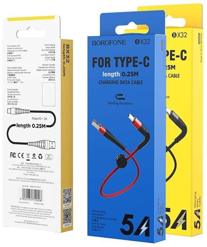 Borofone BX32 Munificent Type-C - компактный провод длиной 0,25 м, идеально подходит для зарядки от переносного зарядного устройства (Power Bank), а также от других источников питания, когда они расположены близко. Благодаря компактным размерам и легкому весу, кабель удобно брать с собой. В его конструкции предусмотрен фиксатор-бегунок: 2 конца провода можно зафиксировать наподобие петли. Провод поддерживает передачу данных. Он выполнен из качественных и надежных материалов, а стильный дизайн защиты коннекторов отличное дополнение сильных технических характеристик.