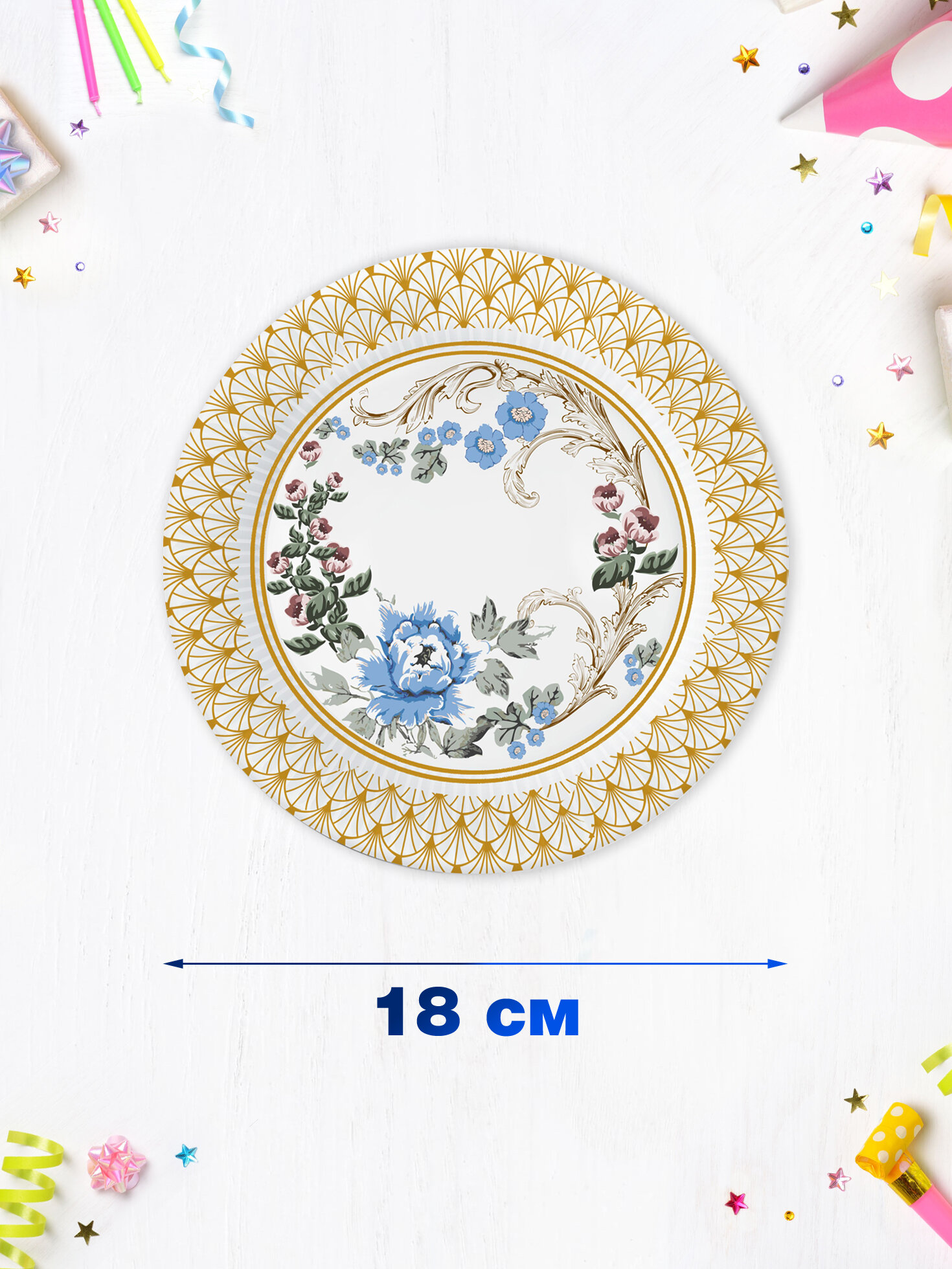 Набор одноразовых тарелок это стильное и практичное украшение для праздничного стола. Красочные бумажные тарелки привлекут внимание гостей и поднимут настроение. Набор состоит из 6 бумажных тарелочек диаметром 18 см. Одноразовая посуда поможет сэкономить время на мытье посуды после праздника. Одноразовые тарелочки изготовлены из плотного ламинированного картона и упакованы в пакет с еврохолдером. Бумажная посуда не разобьется, поэтому полностью безопасна для детей.
