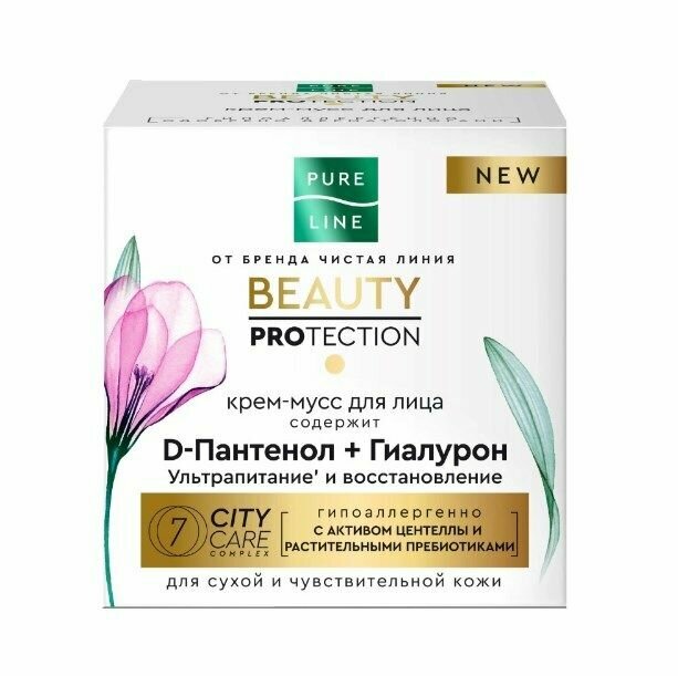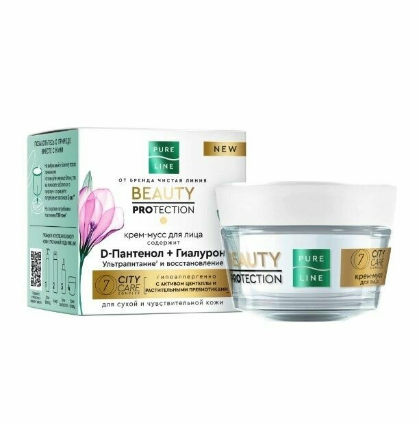 Крем-мусс для лица PURE LINE Чистая линия с гиалуроновой кислотой и d-пантенолом 45 мл