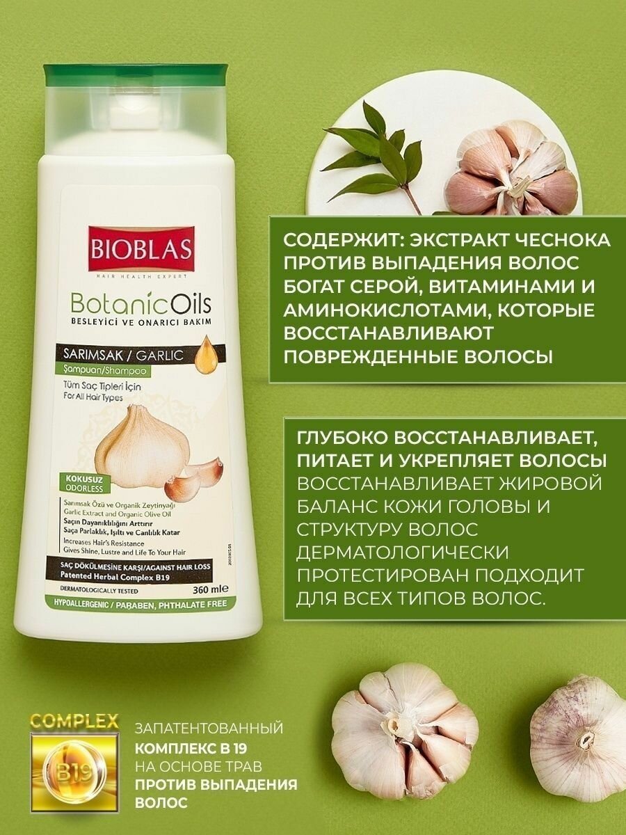 Шампунь против выпадения волос Bioblas с экстрактом чеснока и оливковым маслом 360 мл