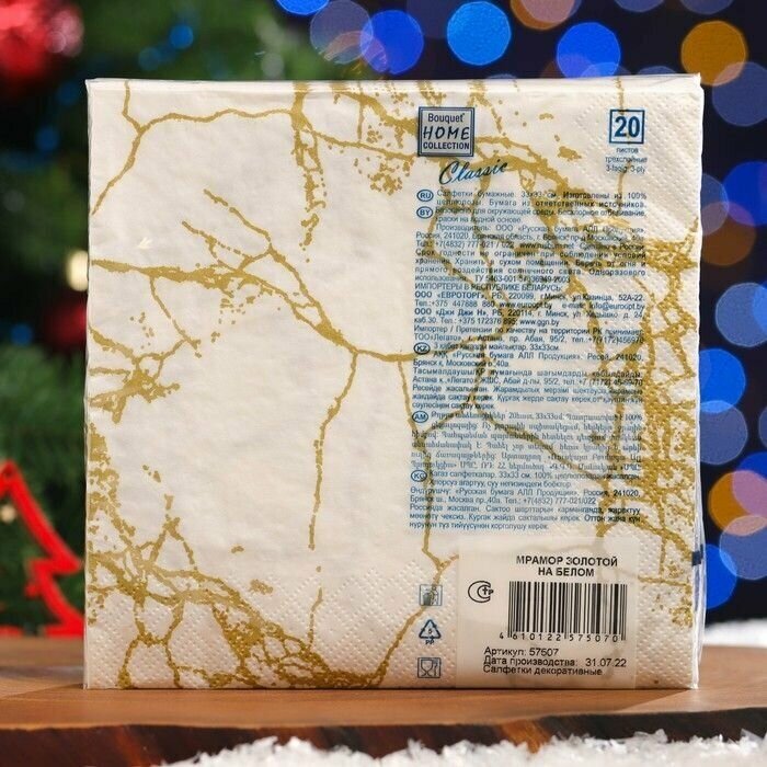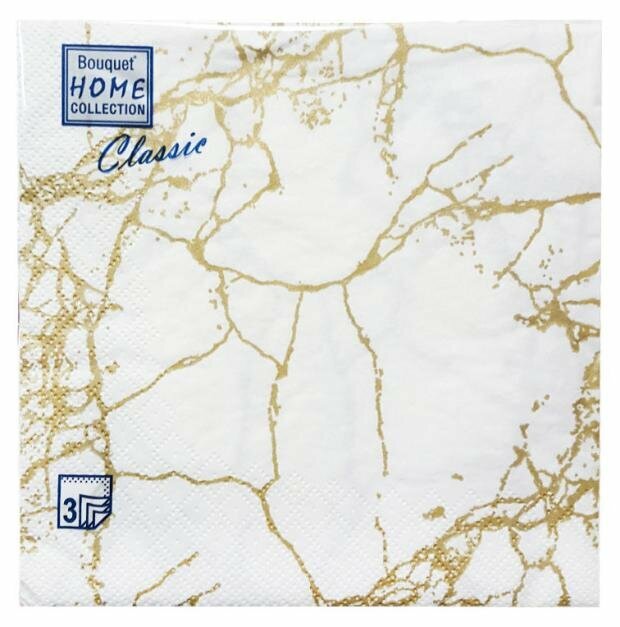 Салфетки бумажные Bouquet Мрамор белый 3 слоя 33х33 см 20 шт (размер: 33 x 33 см)