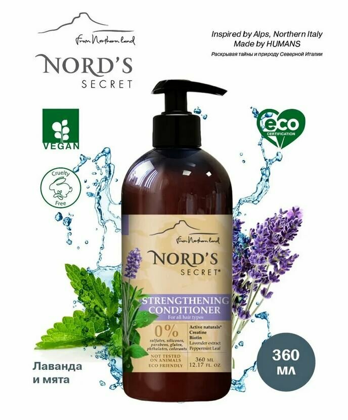 Кондиционер для волос Nord's Secret укрепляющий с биотином Лаванда и Мята 360 мл