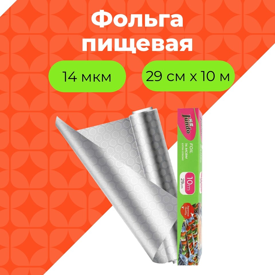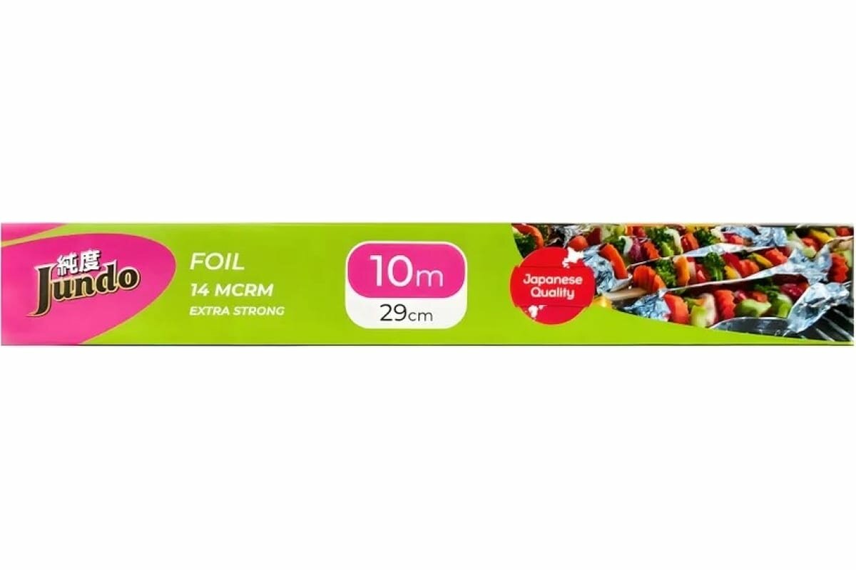 Фольга JUNDO удобна для использования на домашней кухне и безопасна при контакте с пищевыми продуктами. Температура внутри нее распределяется равномерно. Продукты не пригорают и не прилипают, фольга хорошо держит форму, не токсична, сохраняет свежесть и вкус продуктов. Водо- и жиронепроницаема. Готовьте легко и вкусно в духовке, на гриле, на открытом огне. Высокая жаропрочность до 230C.Размер: 29 см х 10 м, рулон в картонной коробе с удобным вскрытием.