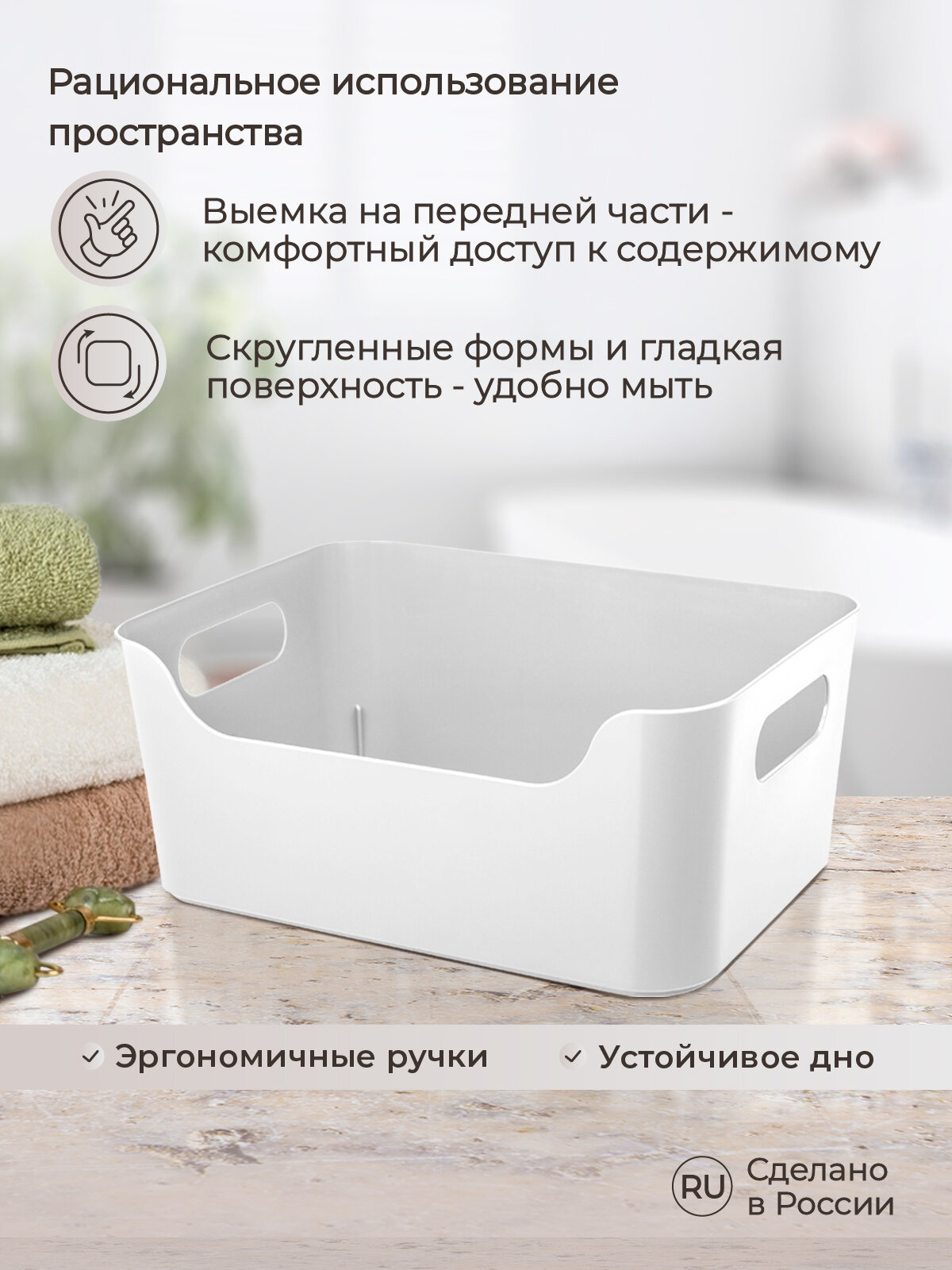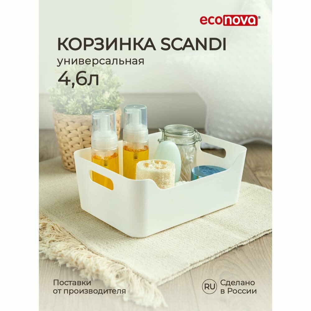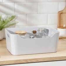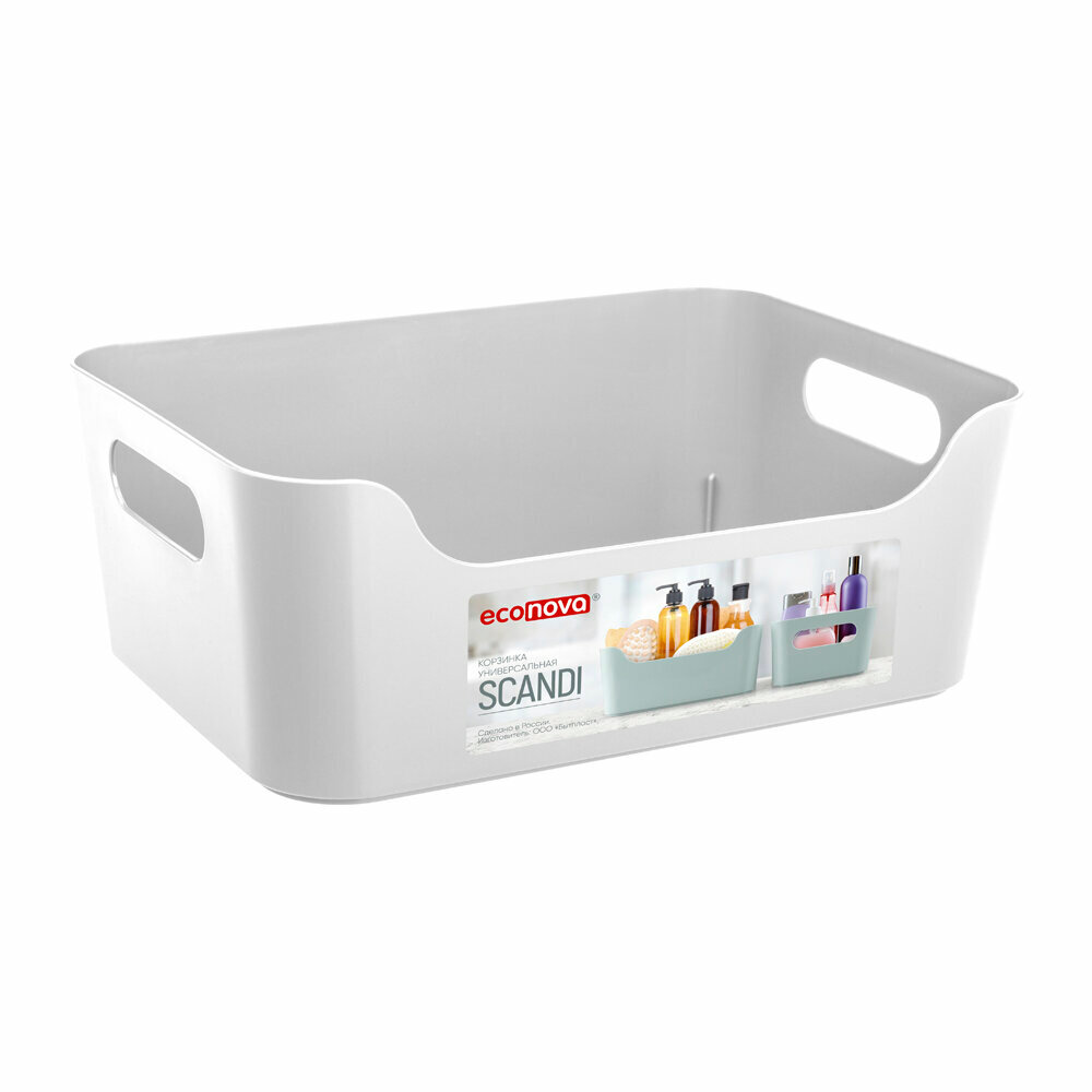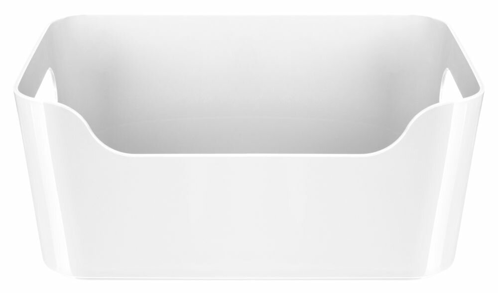Корзинка с ручками Econova поможет хранить полезные мелочи всегда на своих местах: документы, ключи, бижутерию, косметику, пульты, канцелярские товары, маленькие предметы одежды, аксессуары для кухни. Благодаря боковым ручкам корзинки удобно переносить или снимать с полки. Выемка в передней части позволяет видеть, что именно хранится в корзинке и обеспечивает удобный доступ к её содержимому. Корзинка со скруглёнными углами и глянцевой поверхностью легко моется или протирается влажной тканью.