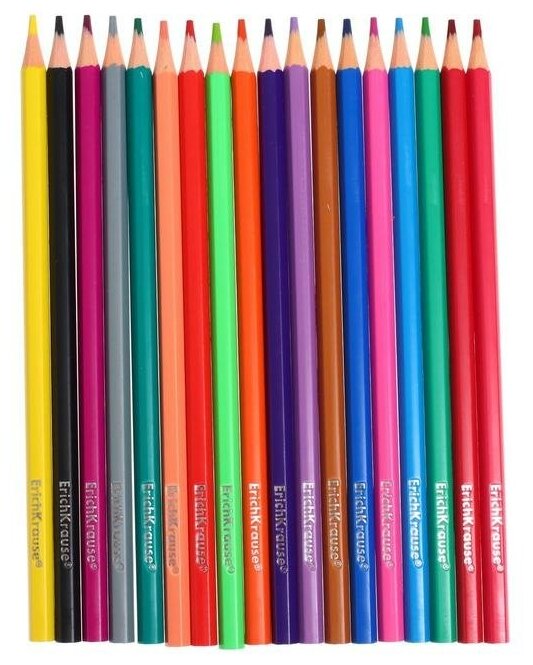 Пластиковые цветные карандаши ErichKrause Basic представлены широкой палитрой оттенков, которые хорошо смешиваются между собой, позволяя создавать рисунки любой сложности. Благодаря шестигранной форме, карандаши удобно лежат в руке и не скатываются с поверхности. Специальная технология изготовления карандаша методом экструзии надежно фиксирует грифель к корпусу, что обеспечивает высокую ударопрочность. Идеальная центровка грифеля и пластичность материала карандаша гарантирует легкую заточку с экономным расходом карандаша. Грифель диаметром 2.6 мм не ломается и не крошится даже при сильном нажиме. Цвета в наборе: 1. Желтый, 2. Оранжевый, 3. Красный, 4. Малиновый, 5. Темно-красный, 6. Розовый, 7. Лососевый, 8. Лиловый, 9. Маджента, 10. Фиолетовый, 11. Синий, 12. Голубой, 13. Салатовый, 14. Зеленый, 15. Лесной зеленый, 16. Коричневый, 17. Серый, 18. Черный.