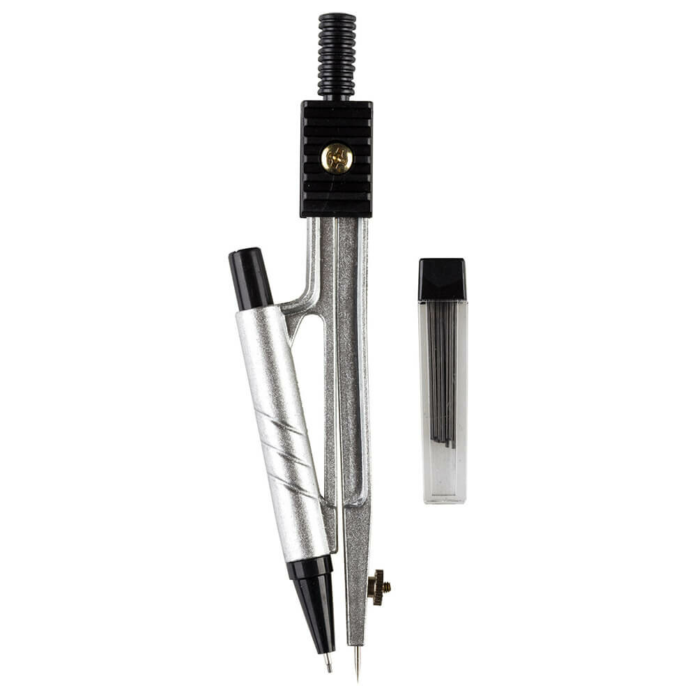 Набор для черчения (циркуль+стержни). Циркуль Centrum металлический позволит с легкостью рисовать фигуры и строить графики, а так же заниматься профессиональными чертежными работами. Пишущий узел изготовлен по принципу механического карандаша.