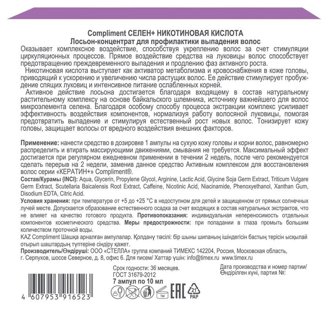 Лосьон-концентрат для волос Compliment селен+ никотиновая кислота для профилактики выпадения 7х10 мл