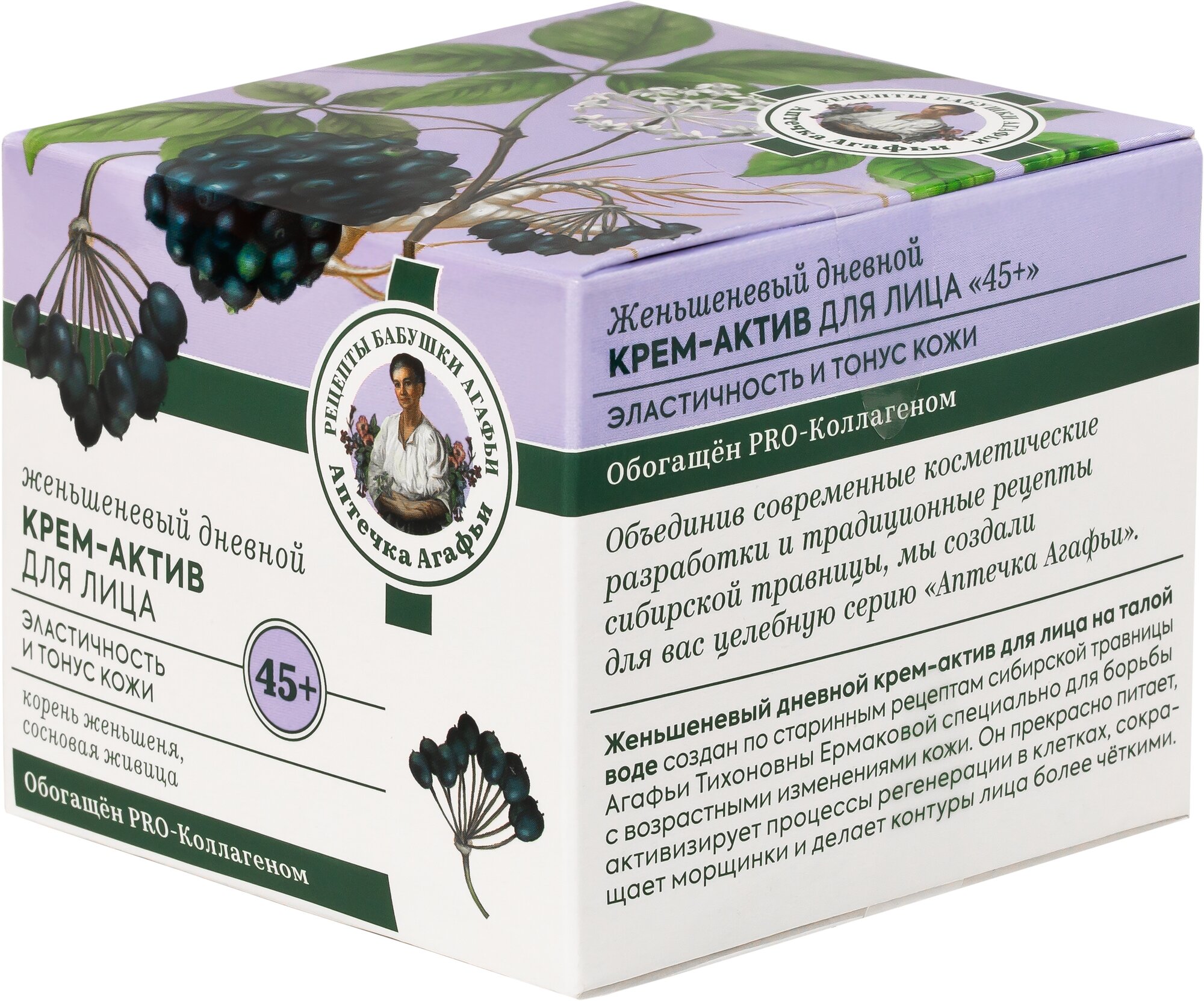 Крем-актив для лица Рецепты Бабушки Агафьи Женьшеневый дневной 45+ 50 мл