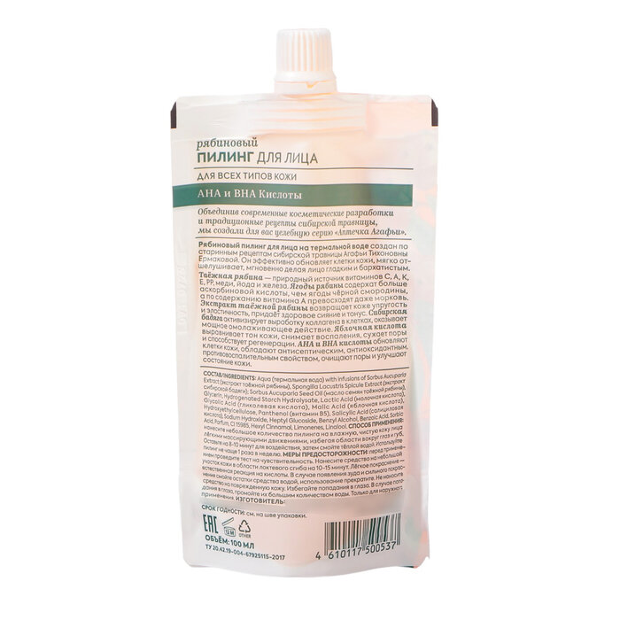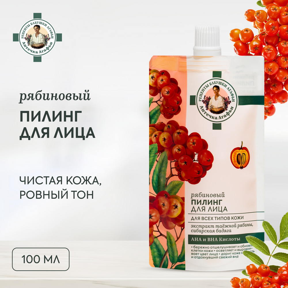 Сервис сравнения цен СкидкаГИД предлагает сравнить цены на товар «Пилинг для лица Рецепты Бабушки Агафьи Рябиновый для всех типов кожи 100 мл»