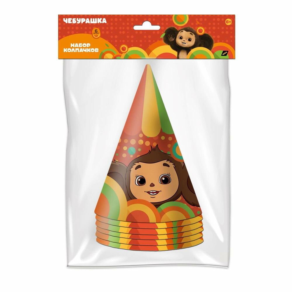 В наборе собрано 6 колпачков из плотного картона с красочным изображением Чебурашки. На колпачках есть мягкие резиночки, чтобы украшение не сползало с головы ребенка. Колпачки дополнят образы гостей, поднимут настроение и станут частью веселых игр.