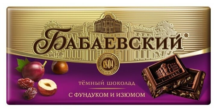 Шоколад Бабаевский темный с фундуком и изюмом 90 г