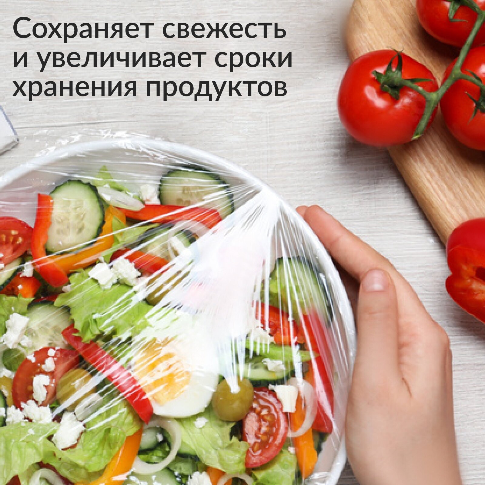 Универсальная пищевая пленка сохраняет свежесть и полезные свойства, позволяет длительно хранить продукты питания, предотвращает смешивание запахов в холодильнике, подходит для заморозки продуктов. Обладает хорошей растяжимостью и способностью прилипать ко всем видами посуды, что обеспечивает полную герметичность и препятствует высыханию продуктов.