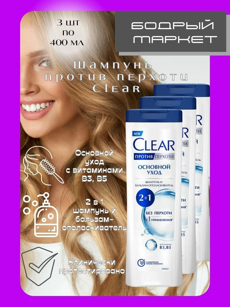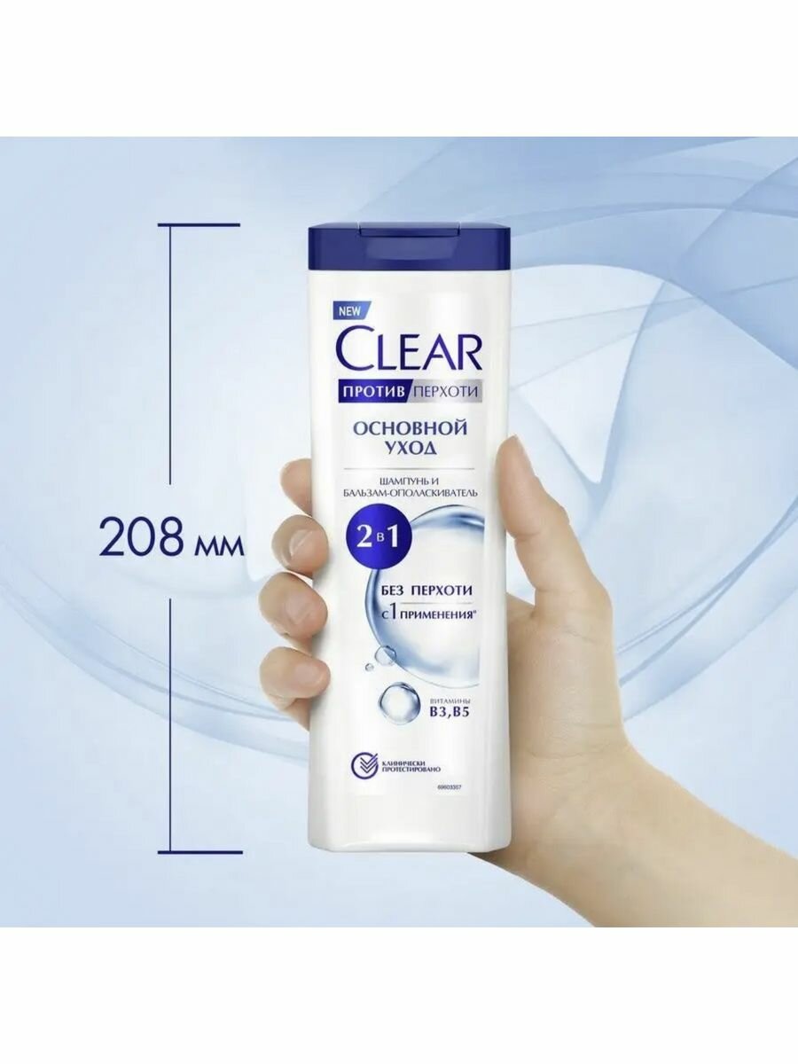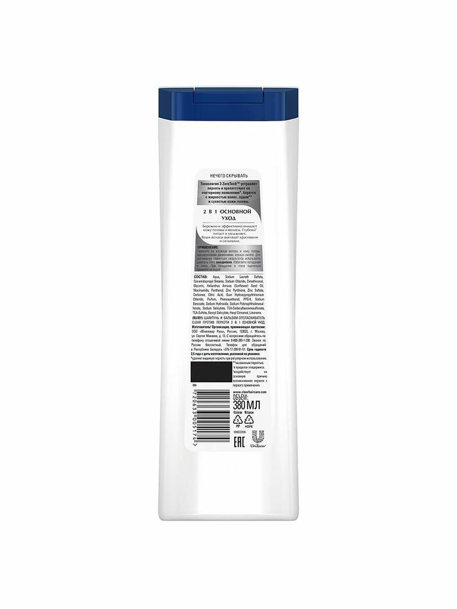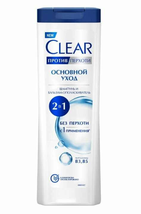Шампунь и бальзам-ополаскиватель Clear против перхоти 2в1 Основной уход воздействует на основную причину возникновения перхоти с первого применения и препятствует ее повторному появлению, борется с жирностью волос и зудом. Шампунь и бальзам-ополаскиватель Clear против перхоти 2в1 Основной уход содержит: - технологию 3 ZeroTech; - витамины В3 и В5. Шампунь и бальзам-ополаскиватель Clear против перхоти 2в1 Основной уход подходит для ежедневного применения.