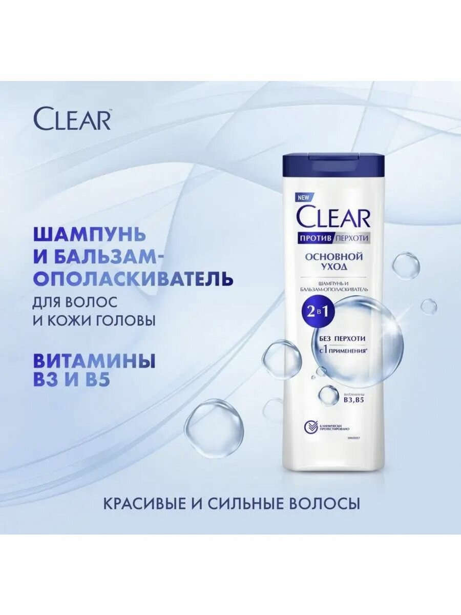 Шампунь и бальзам-ополаскиватель для волос Clear Основной уход 2 в 1 против перхоти 380 мл