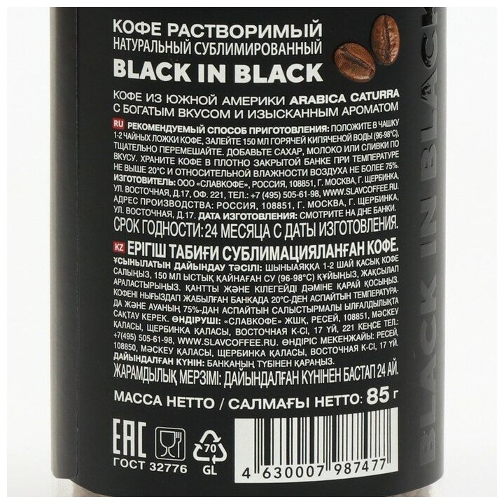 Сервис сравнения цен СкидкаГИД предлагает сравнить цены на товар «Кофе растворимый Black In Black сублимированный 85 г»
