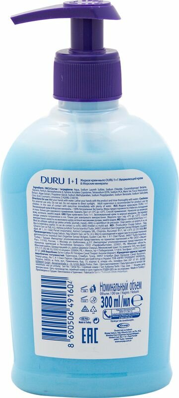 Жидкое крем-мыло DURU 1+1 Морские минералы имеет очень мягкую увлажняющую текстуру и приятный морской аромат для Ваших рук. Теперь в удобном refill-формате упаковки!