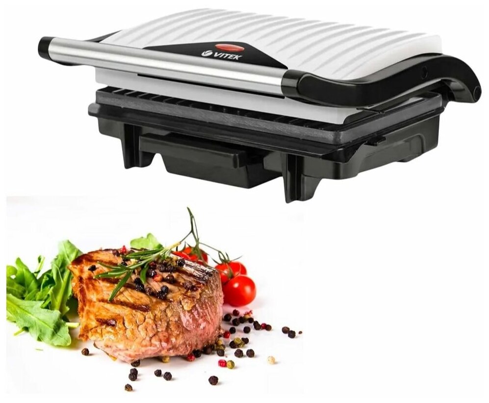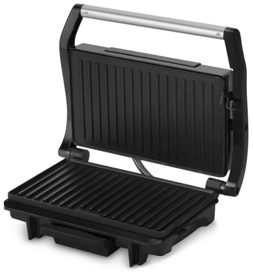 Не забудьте о теплоизолированной ручке, которая предотвратит получение ожогов при использовании гриля. Рабочие поверхности из металла с антипригарным покрытием обеспечивают легкую очистку после приготовления. И индикатор включения подскажет вам, когда гриль достиг нужной температуры.