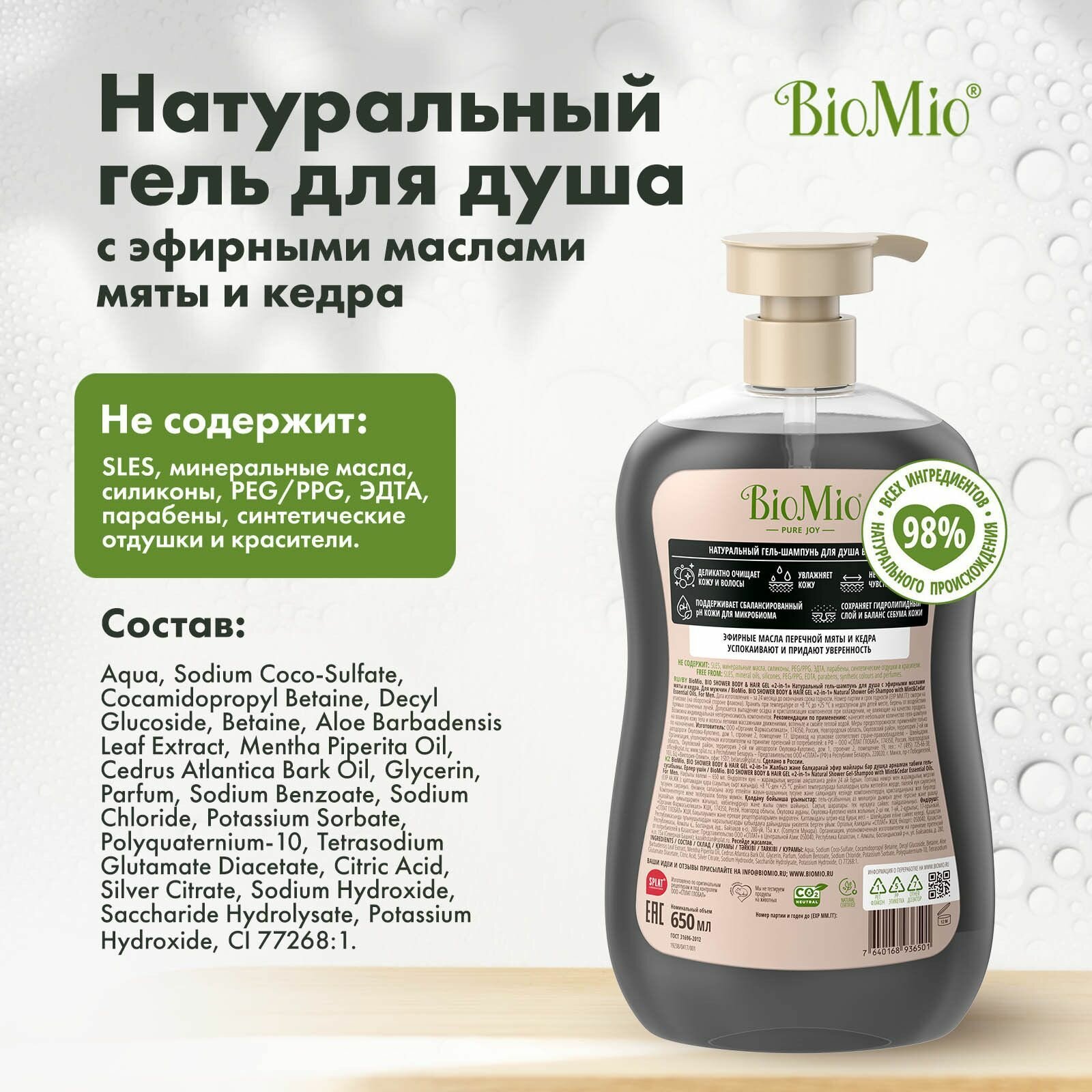 Гель-шампунь для душа BioMio Bio Shower Body & Hair Gel с эфирными маслами мяты и кедра 650 мл