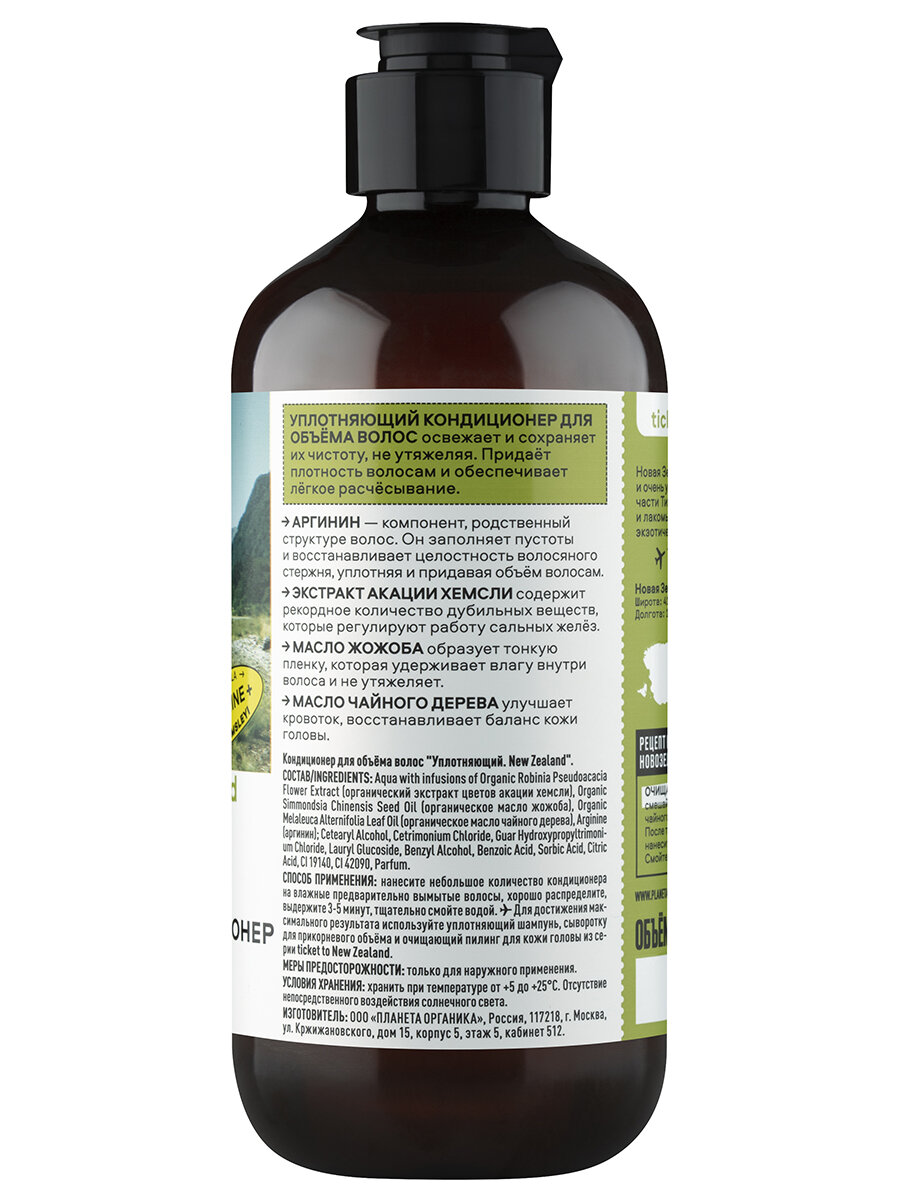 Кондиционер для объема волос Planeta Organica Ticket to New Zealand Уплотняющий 400 мл