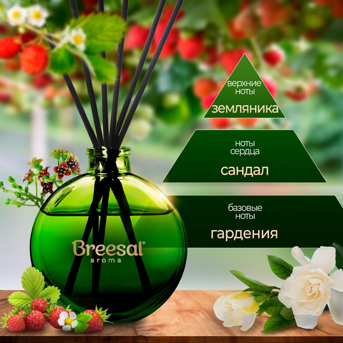 | Аромат | Земляника, Сандал, Гардения |