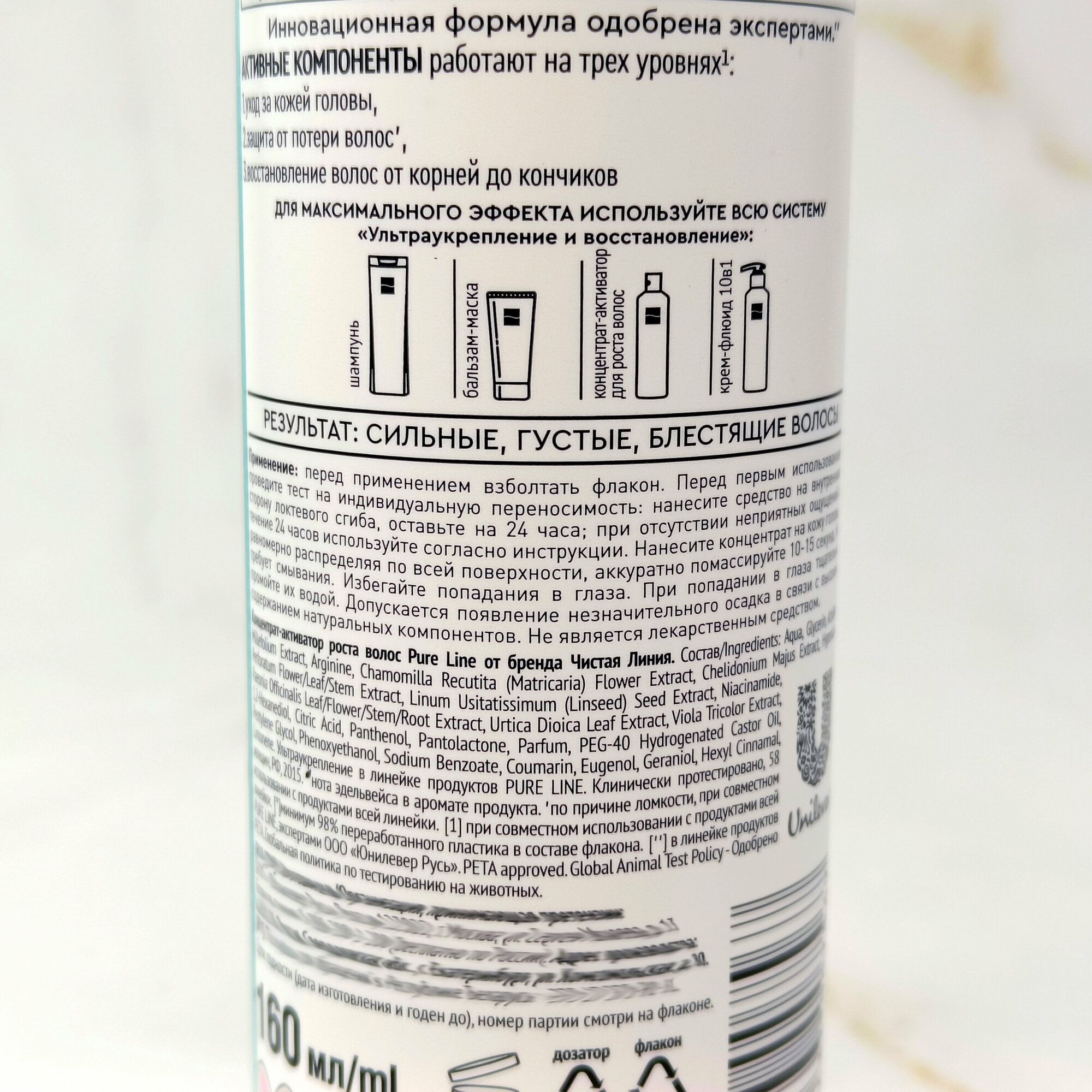 Концентрат-активатор для волос Чистая Линия 10 в 1 Ультраукрепление и восстановление 160 мл