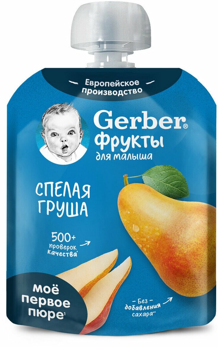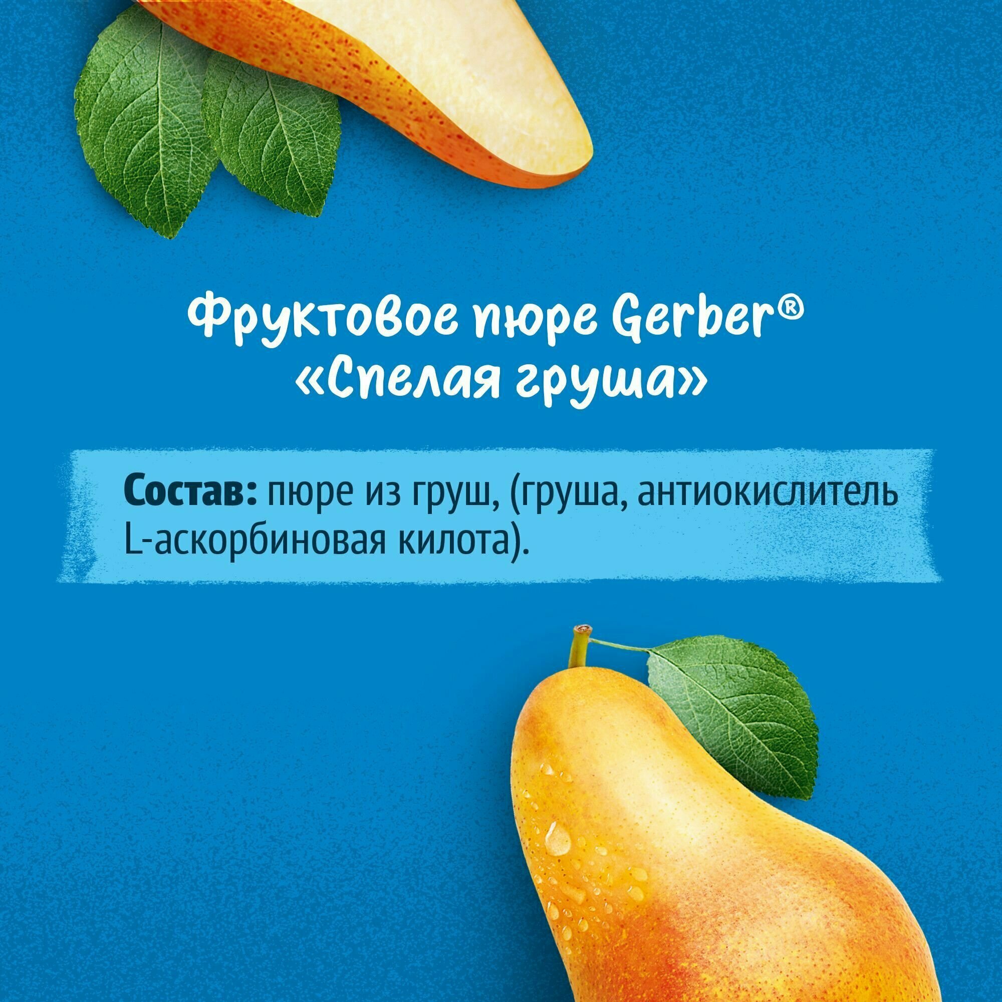 Фруктовое пюре Gerber СПЕЛАЯ ГРУША. *Для питания детей с 4 месяцев в соответствии с законодательством РФ,РБ,РК.