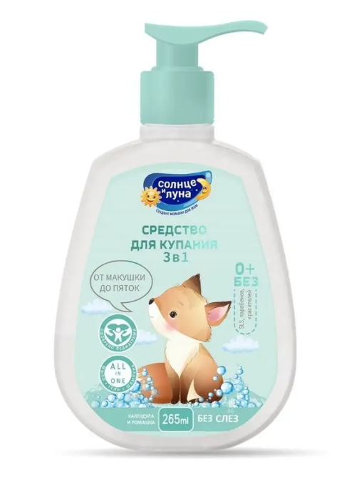 Универсальное детское средство для купания 3 в 1 подходит для бережного ухода за нежной кожей малыша с первых дней жизни. Мягкая формула способствует деликатному очищению с головы до пяток, не сушит кожу и не щиплет глазки. Ромашка оказывает мягкий антибактериальный эффект, увлажняет кожу и защищает от внешних воздействий. Календула оказывает противовоспалительное действие, успокаивает кожу и снимает раздражения. Средство можно использовать для ежедневного подмывания и купания детей, подходит для чувствительной кожи. Лисенок бренда Солнце и Луна готов стать помощником каждой заботливой маме на пути безопасного ухода за любимым малышом!