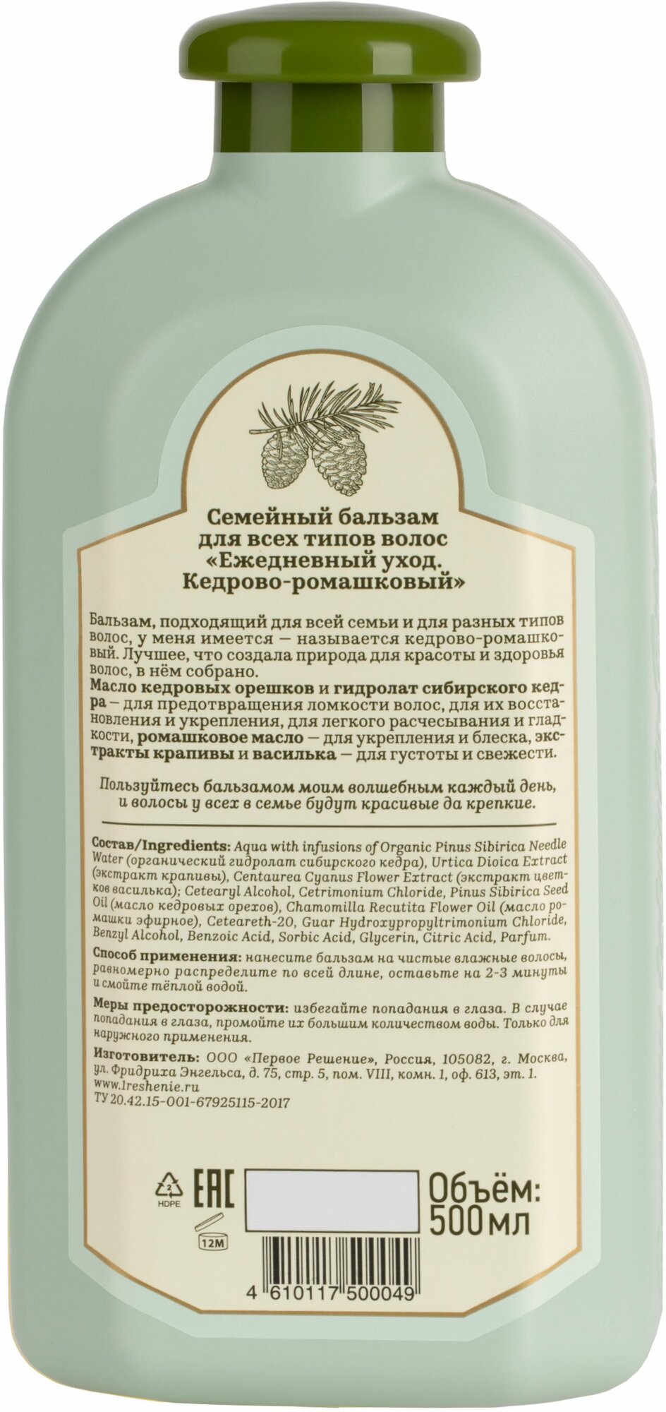 Бальзам для волос Рецепты Бабушки Агафьи Сибирская Травница ежедневный уход кедрово-ромашковый для всех типов волос 500 мл