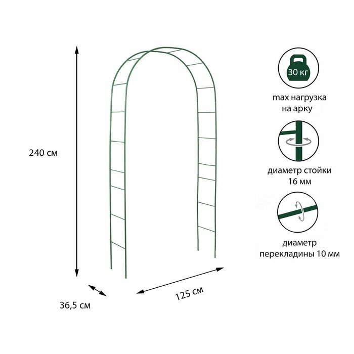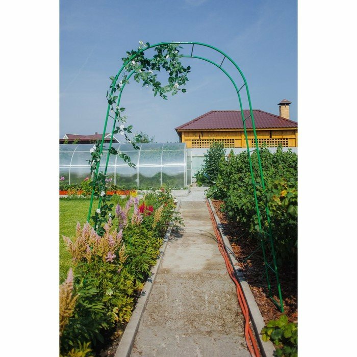 Арка садовая поможет создать индивидуальный, роскошный ландшафт на участке. Конструкция опоры для растений самосборная, собрать ее легко за считанные минуты. Арка состоит из окрашенных металлических элементов, благодаря этому арка для растений выдержит любую погоду и сохранит свой внешний вид надолго. Держатель садовый прочный, надежно фиксируется в земле. При помощи него можно создать уникальный садовый декор из цветов, вьющихся растений. Держатель для растений идеально подойдёт для загородного дома, коттеджа, дачи. Опора для вьющихся растений отлично выдержит даже большие композиции и будет радовать глаз каждый день. Ее можно установить как дополнение к беседке или как самостоятельное изделие.