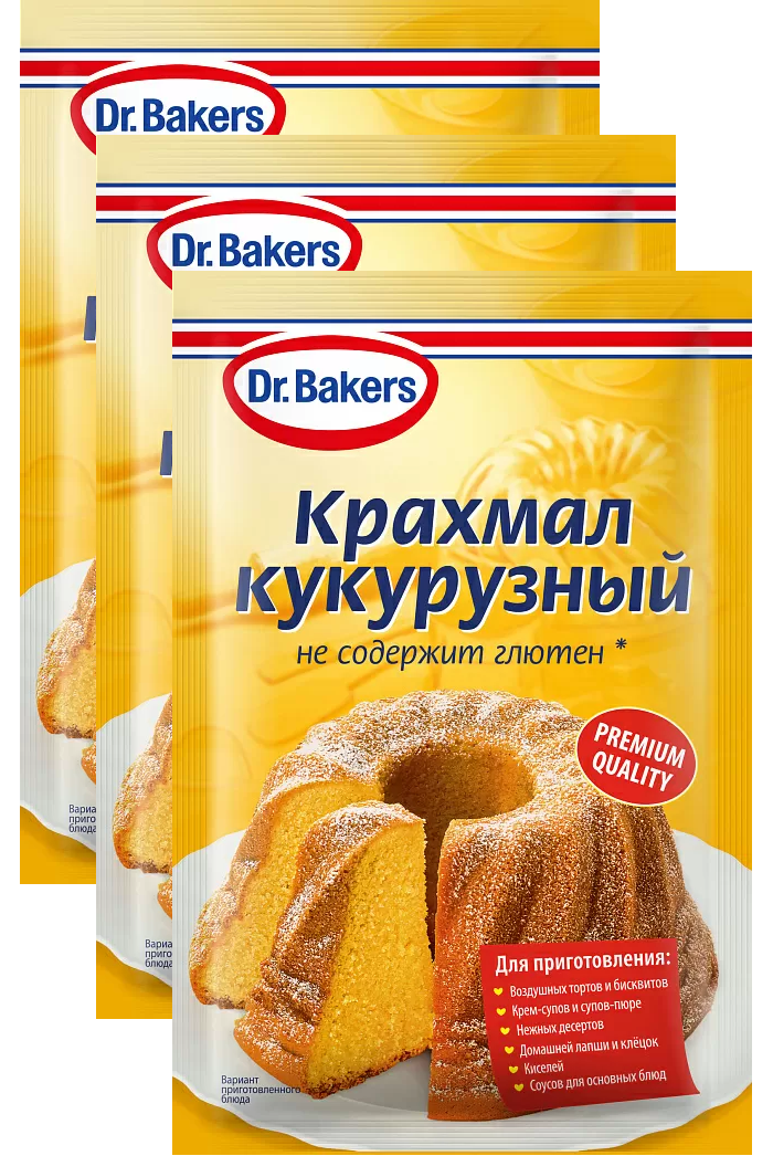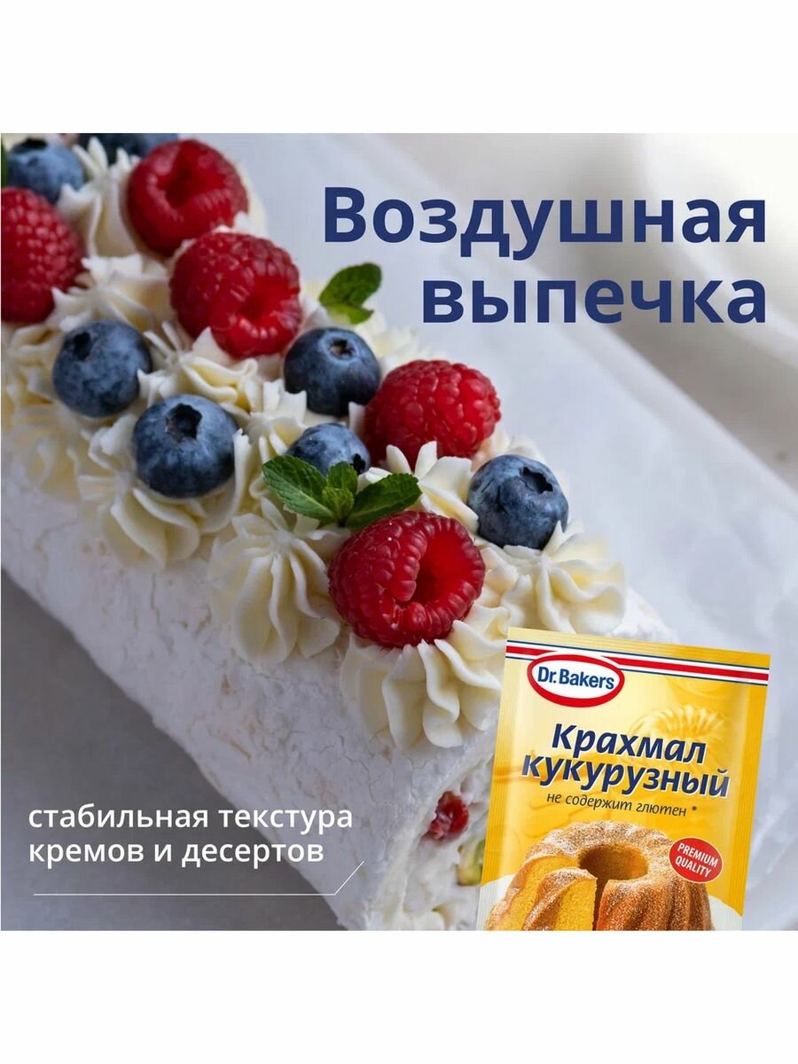 С кукурузным крахмалом Dr.Oetker торты, кексы и бисквиты будут воздушными, десерты приобретут более гладкую и однородную текстуру, домашняя лапша и клецки не потеряют форму и сохранят аппетитный вид в процессе приготовления.