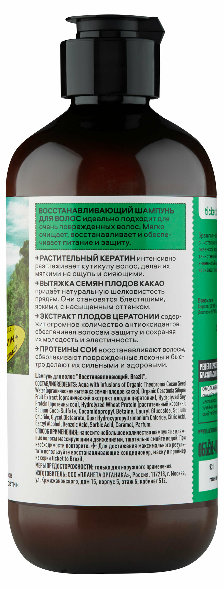 Шампунь для волос Planeta Organica Ticket to Brazil Восстанавливающий 400 мл