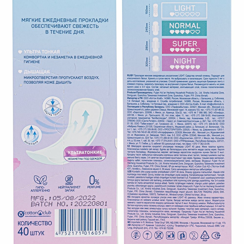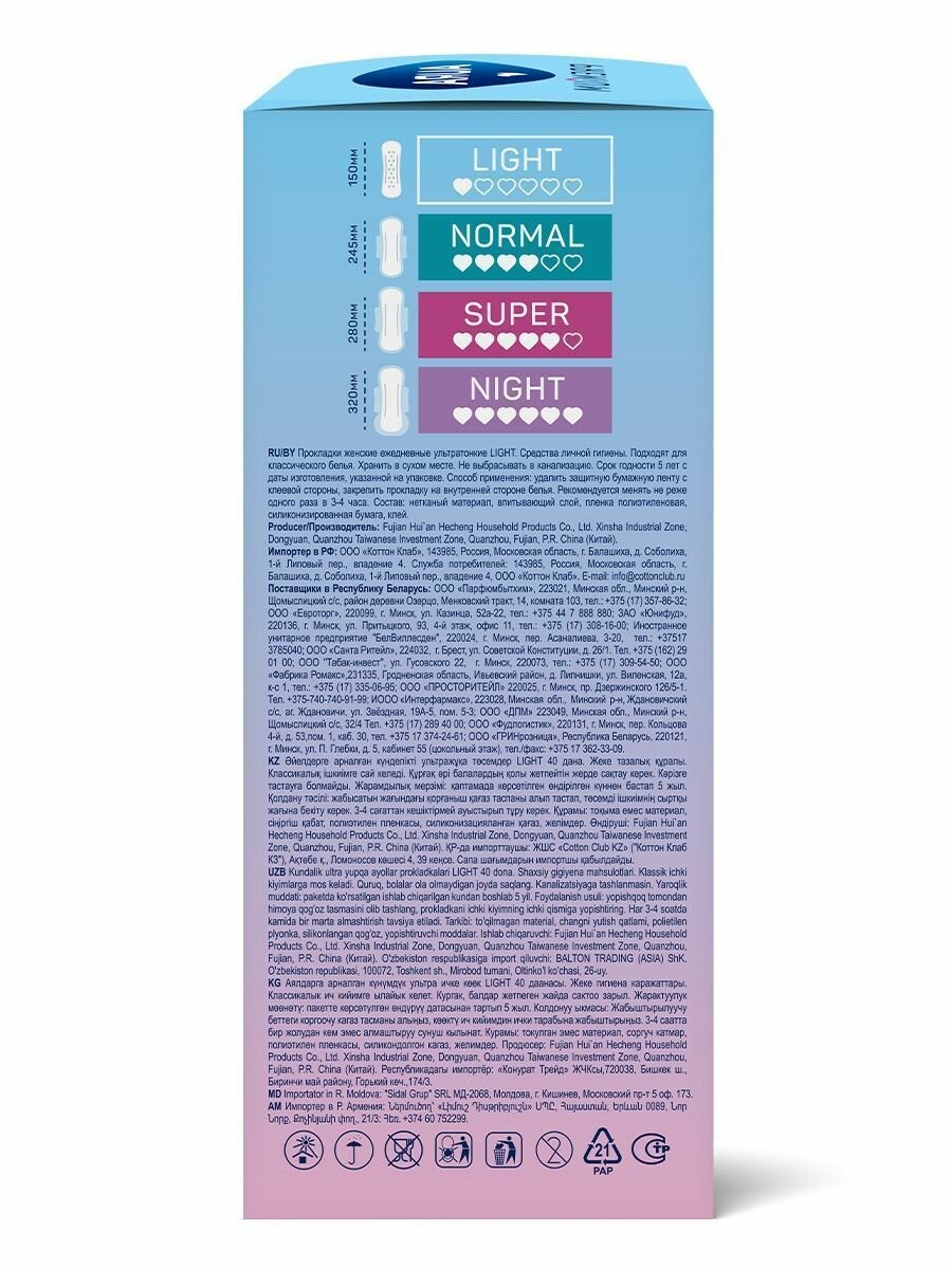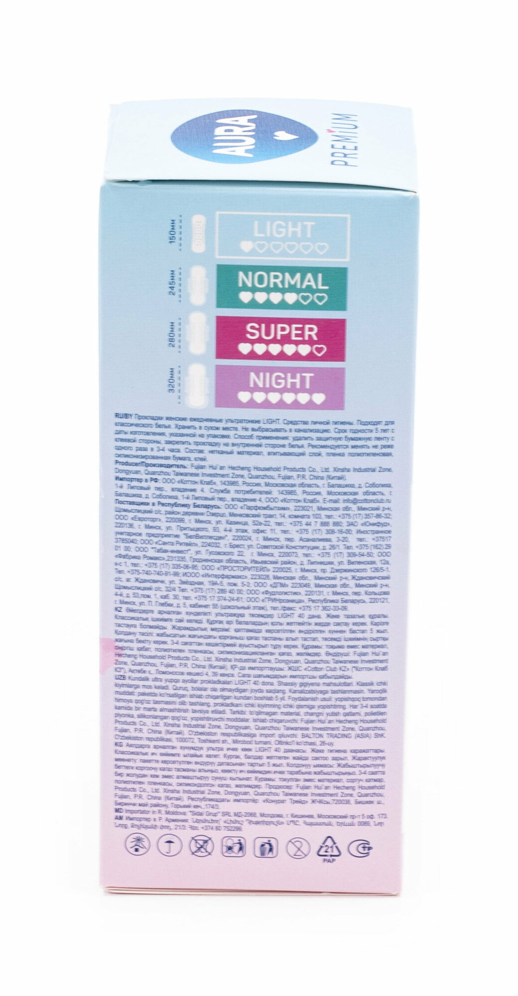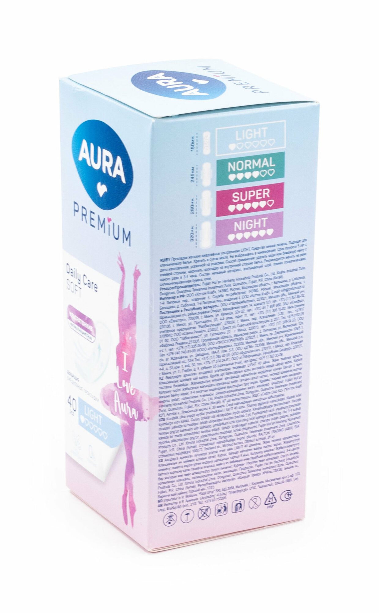 Ультратонкие прокладки AURA Premium LIGHT идеально подходят как для ежедневного использования, так и для защиты в последние дни цикла.