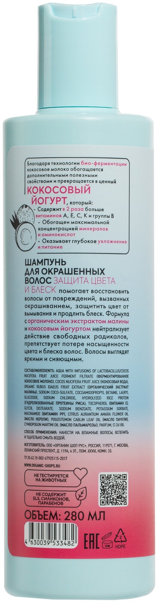 На сегодняшний день товар «Шампунь для окрашенных волос Organic Shop Coconut yogurt Защита цвета и блеск 280 мл» можно купить с кешбеком в 1 магазине: Яндекс.Маркет