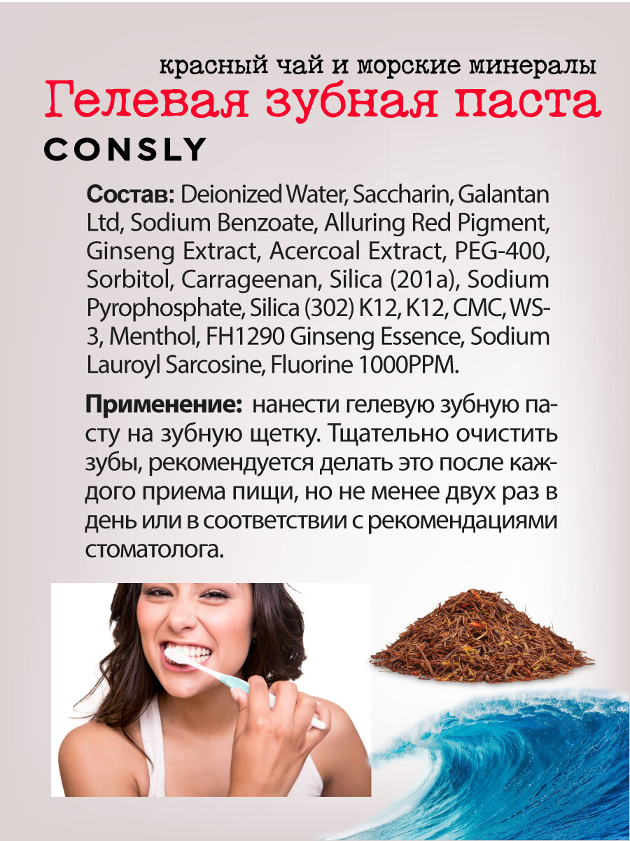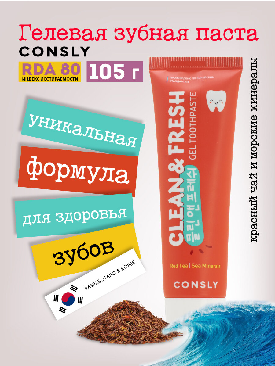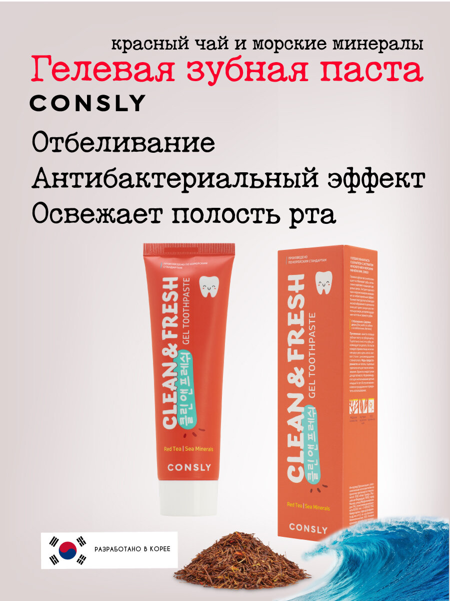Зубная паста CONSLY Clean&Fresh гелевая с экстрактом красного чая и морскими минералами 105 г