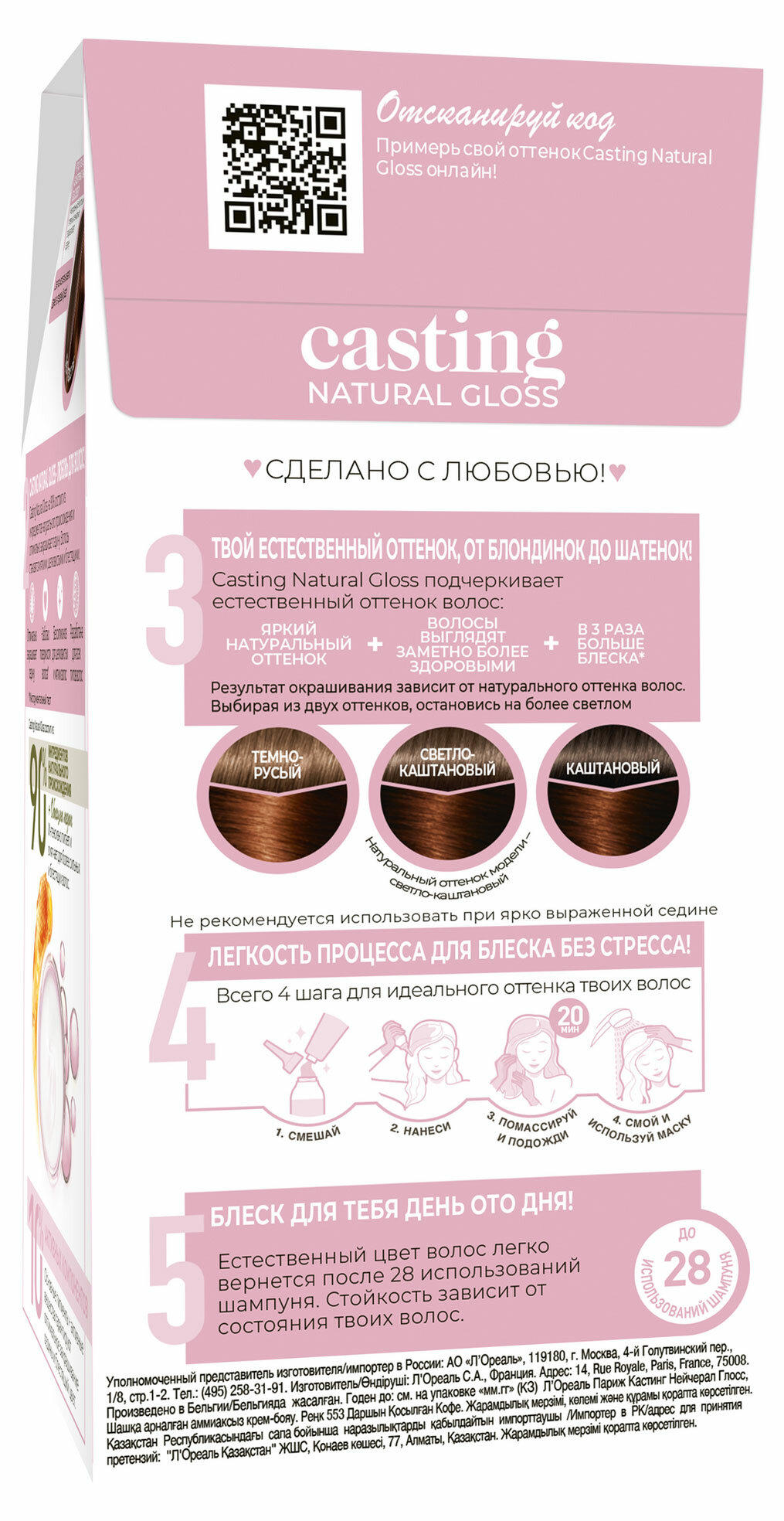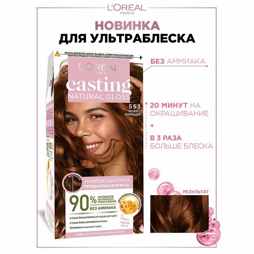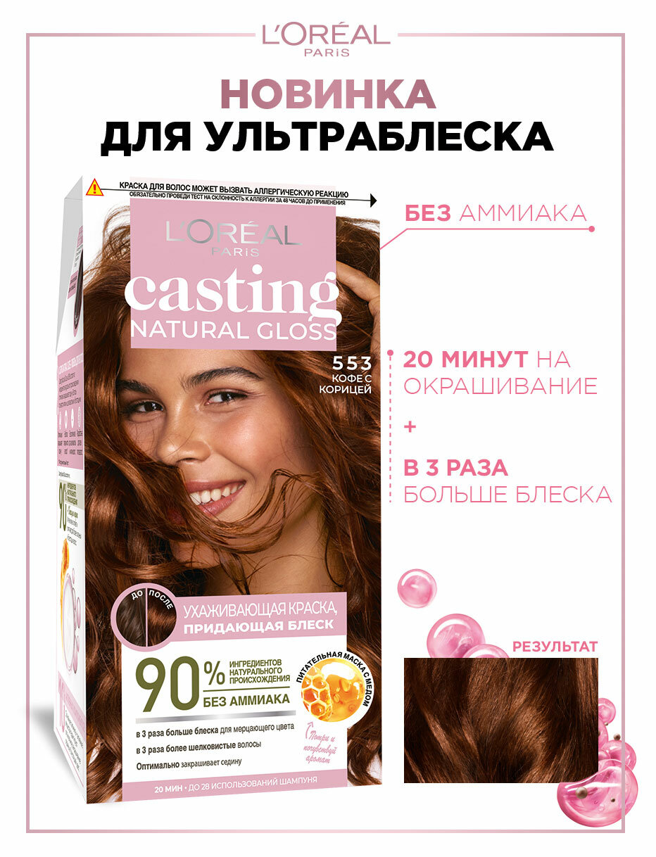 Краска-уход для волос L'Oreal Paris без аммиака Casting Natural Gloss оттенок 553 Кофе с корицей