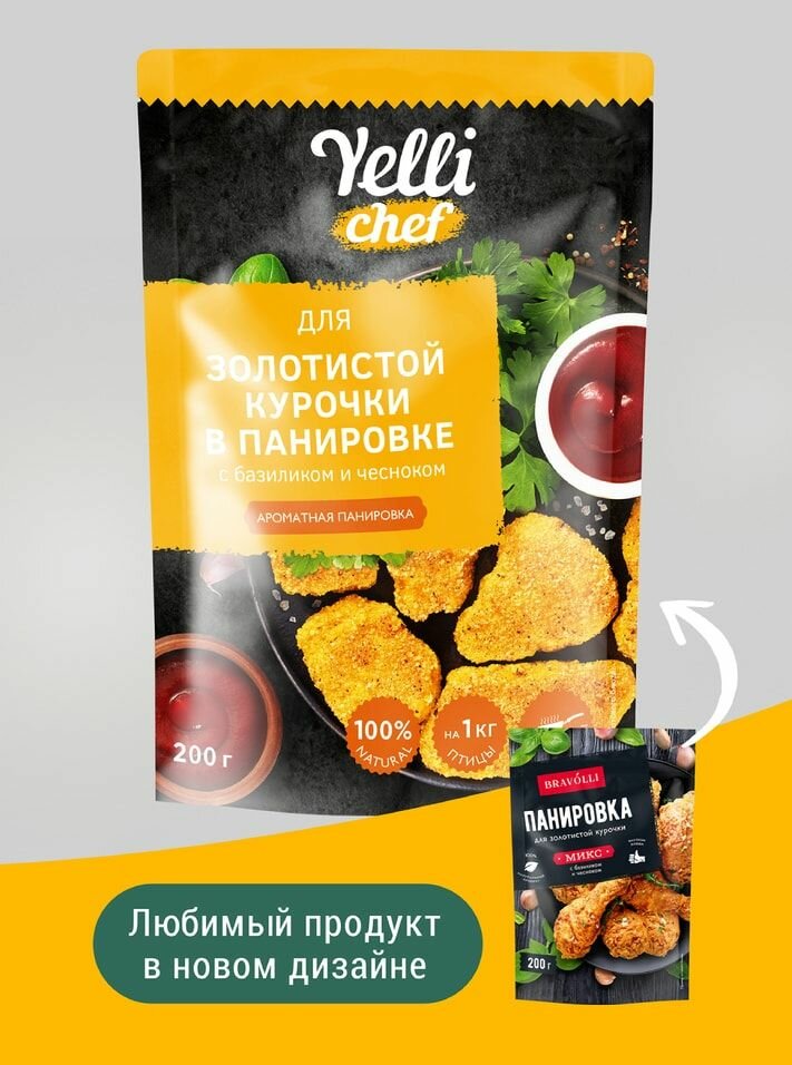 Панировка ароматная Yelli chef для золотистой курочки в панировке с базиликом и чесноком 200 г