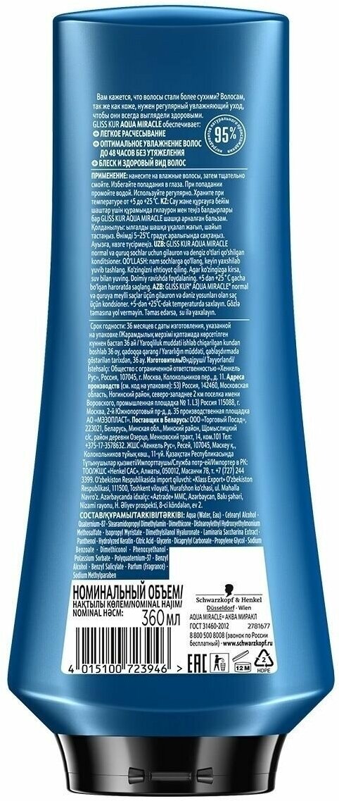 Сервис сравнения цен СкидкаГИД предлагает сравнить цены на товар «Бальзам для волос Gliss Kur Aqua Miracle для нормальных и склонных к сухости увлажнение и мягкость 360 мл»