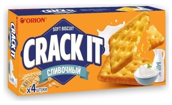 ORION Crack It Сливочный аппетитный крекер с нежным вкусом. Благодаря слегка хрустящей воздушной текстуре он буквально тает во рту, а натуральные сливки в составе делают вкус кондитерского изделия молочным и нежным.